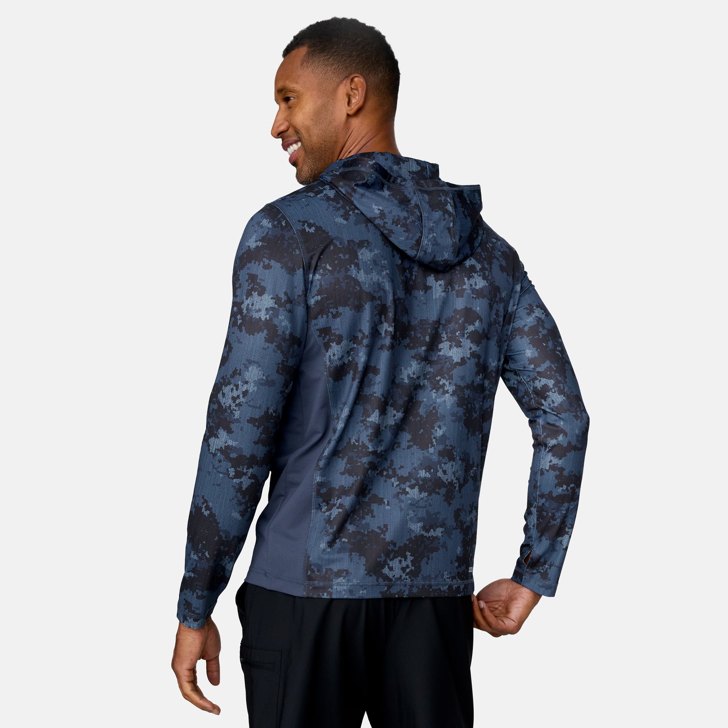 ![[Anderson is 6'2" wearing a size Medium.] Man wearing Free Country Men's SunFree UPF Printed Hoodie in Charcoal Camo, size M, made from anti-odor, breathable lightweight recycled polyester performance fabric featuring a classic active fit, styled with black shorts #color_charcoal-camo](http://freecountry.com/cdn/shop/files/SZMAS5567FC1274CHARCOALCAMO_2412_SS25-006-FC.jpg?v=1750706655&width=860)