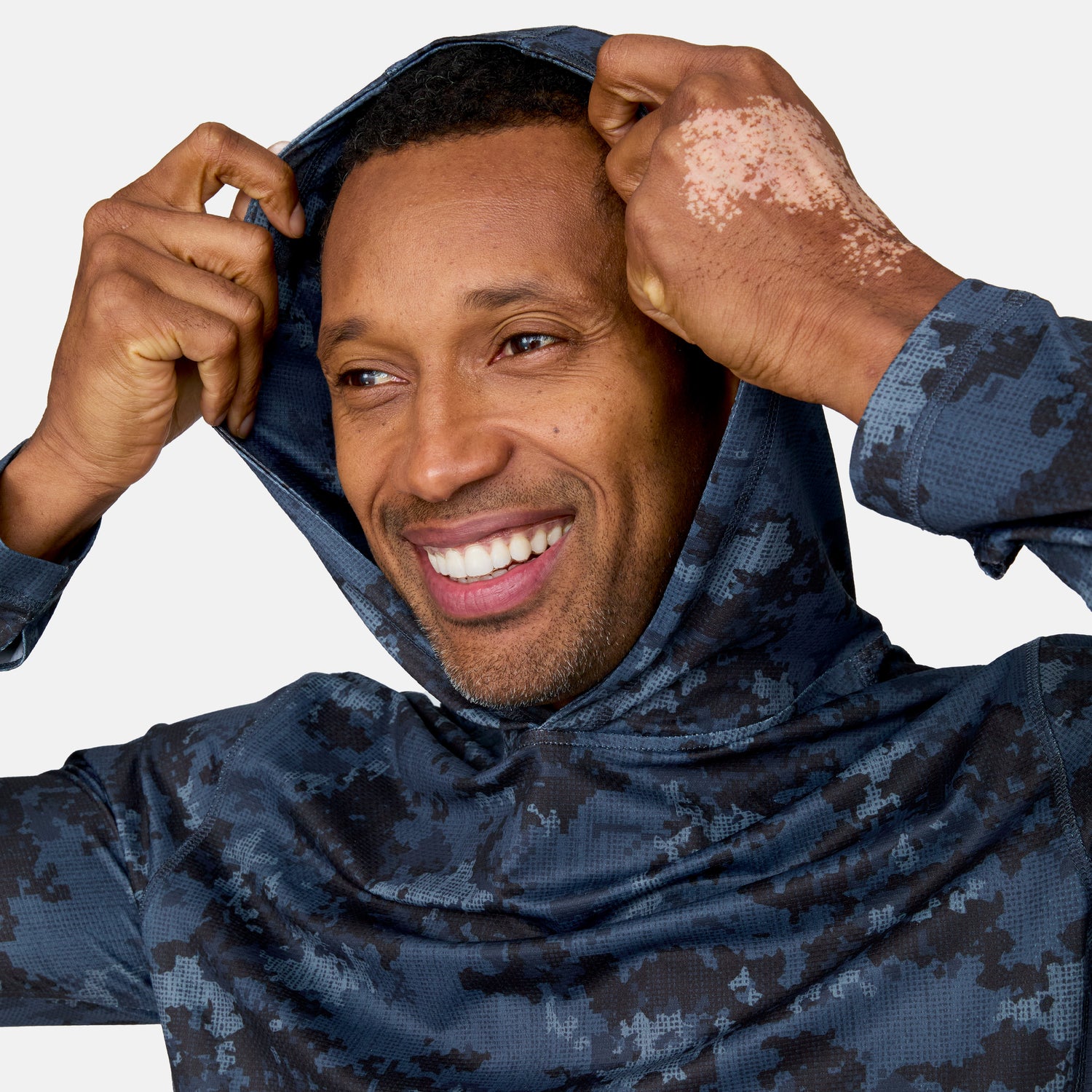 ![[Anderson is 6'2" wearing a size Medium.] Man wearing Free Country Men's SunFree UPF Printed Hoodie in Charcoal Camo, size M, made from anti-odor, breathable lightweight recycled polyester performance fabric featuring a classic active fit, styled with black shorts #color_charcoal-camo](http://freecountry.com/cdn/shop/files/SZMAS5567FC1274CHARCOALCAMO_2412_SS25-057-FC.jpg?v=1750706701&width=860)