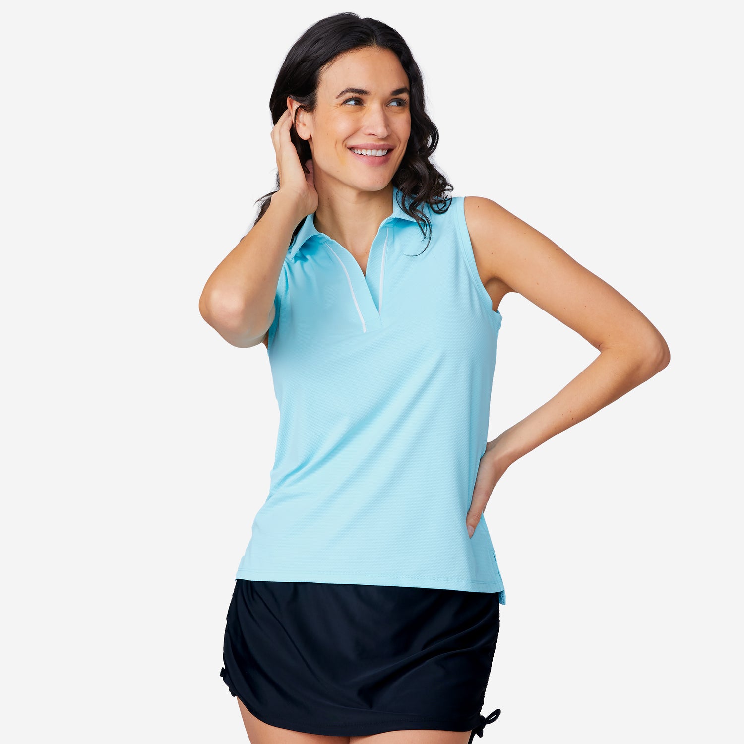 Our newest SunFree sleeveless top is your ticket to looking and staying cool, no matter where your adventures take you. Crafted from a sustainable blend of recycled polyester and spandex, this top features four-way stretch for a fit that moves with you. It wicks away moisture, breathes like a dream and keeps you fresh with built-in anti-odor technology.