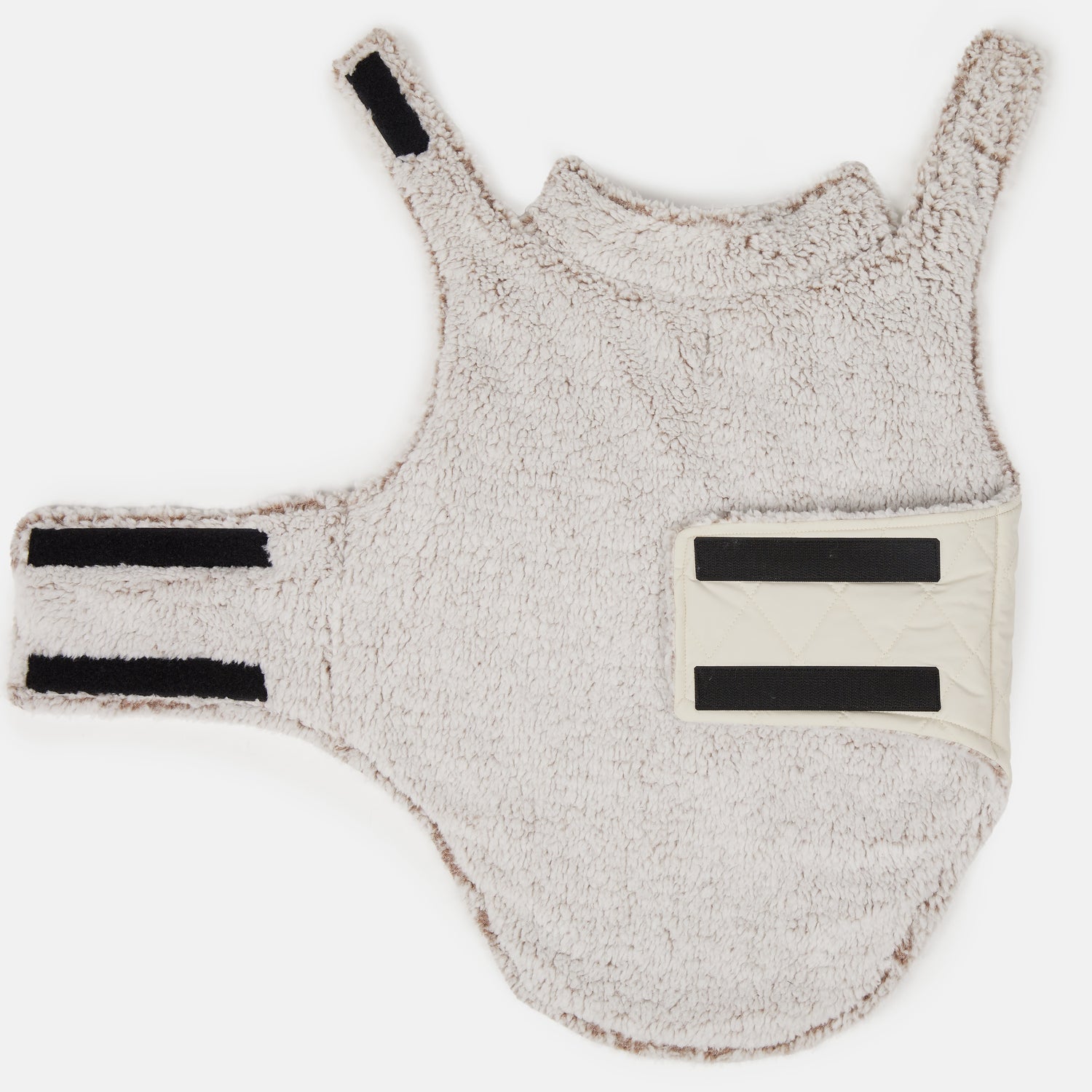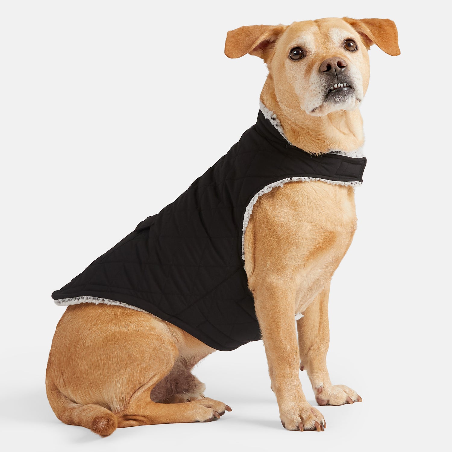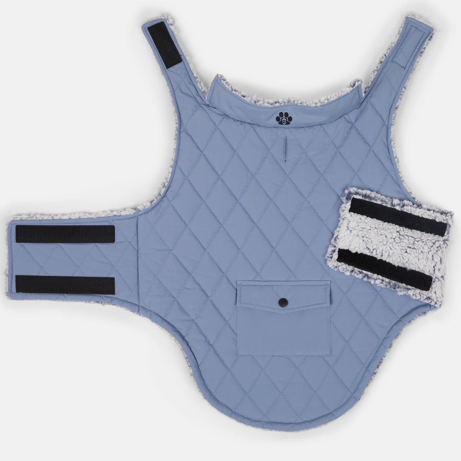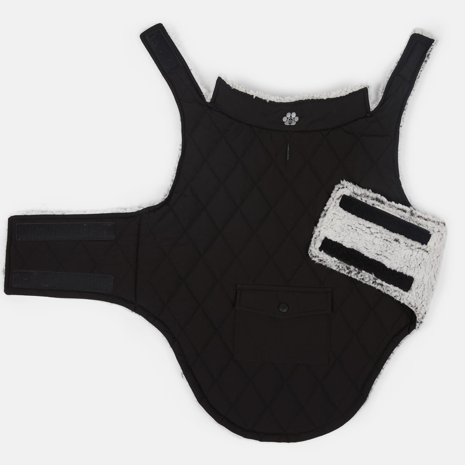 Engineered with the same top-notch quality as our human Stratus Lite jacket, this gem features a sleek diamond quilted pattern on one side and a plush, cozy sherpa lining on the other, it's like two jackets in one! Whether your dog is exploring the great outdoors or just lounging at home, this wind-resistant wonder keeps them snug and dry. The stand collar adds extra warmth, and the adjustable Velcro closure ensures a perfect fit. With a convenient snap-closure patch pocket and a quick-access leash port that makes it easy to take on and off, itās practical and pawsitively perfect for every canine escapade.