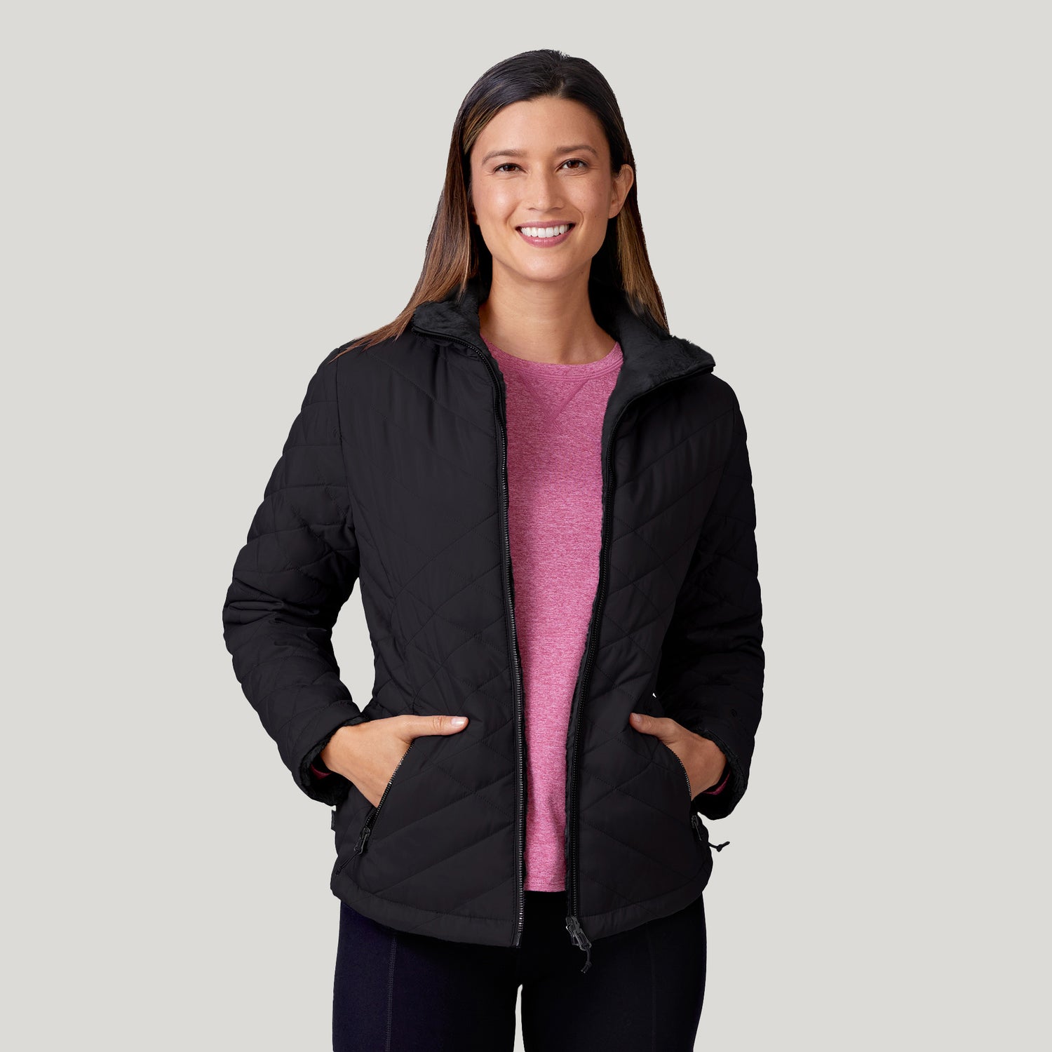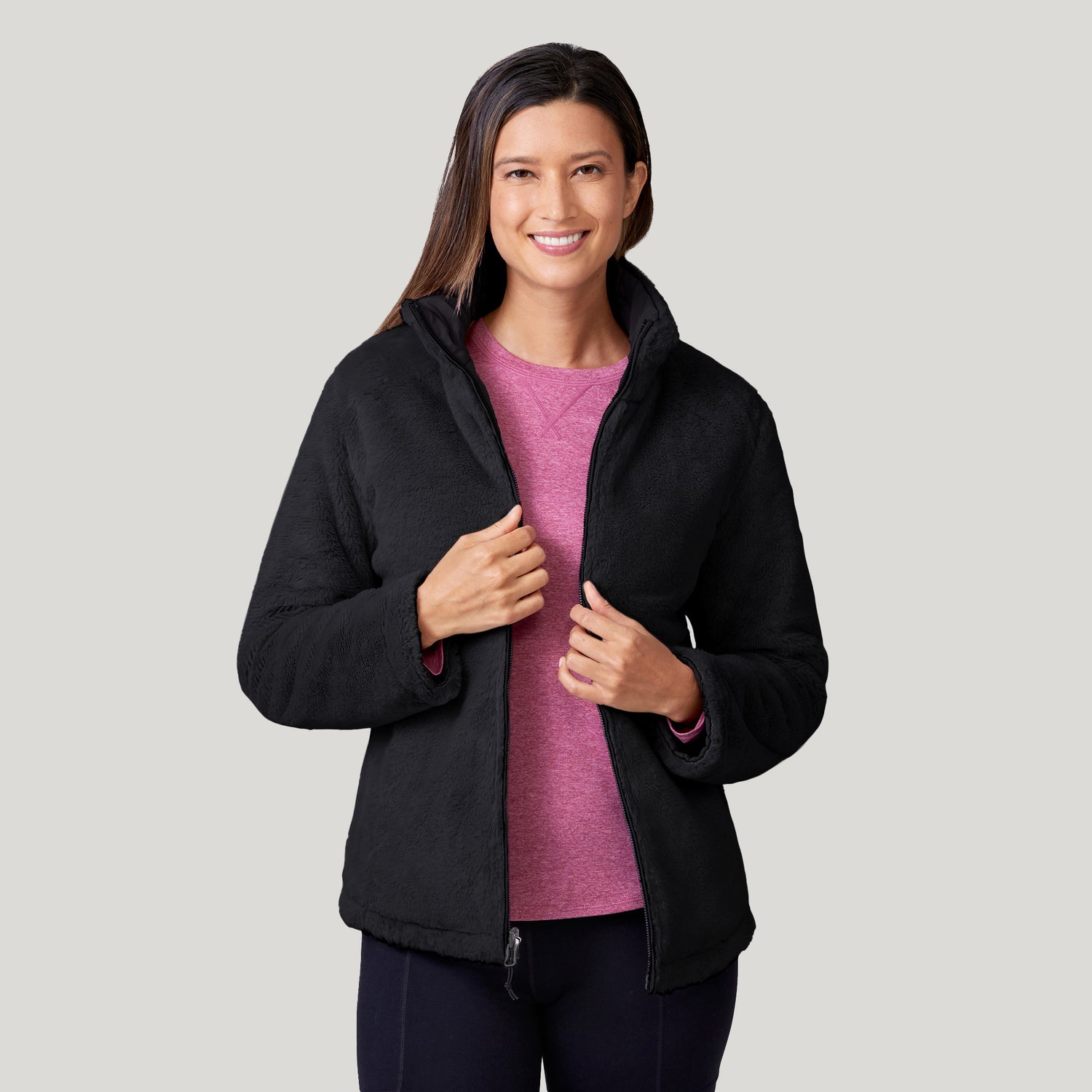 There's a reason why our Cloud collection is one of our favorites. Experience the soft-as-a-cloud touch with this reversible faux fur jacket that has high quality fill made from REPREVE® recycled plastic bottles. This jacket was built for cold weather and has wind resistant features and a stand collar so you're entirely protected and prepared to take on the day.