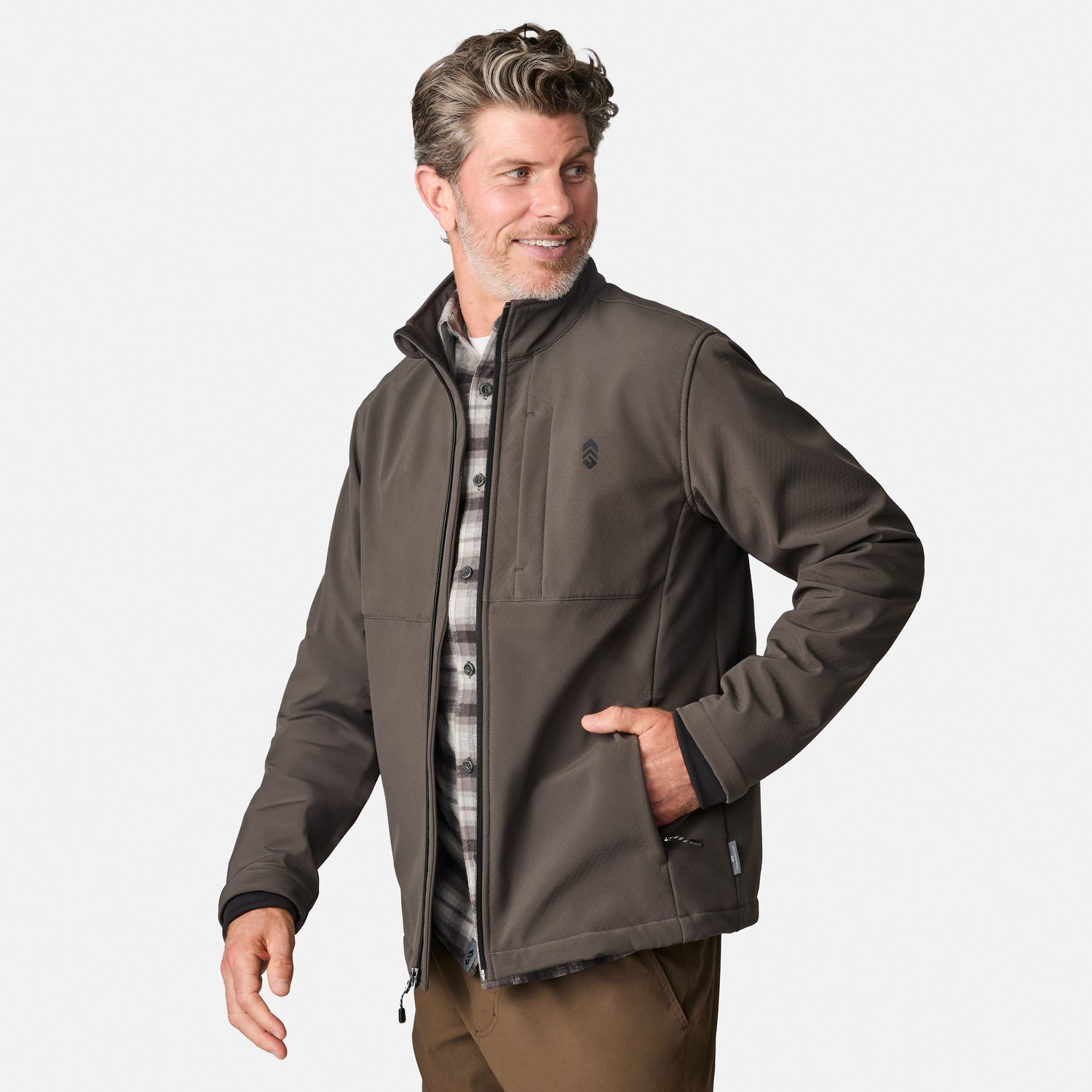 ![[Kolby is 6'2" wearing size M.] Men’s Free Country brown zip-front softshell jacket with high stand collar, subtle chest logo, and minimalistic design—featuring streamlined silhouette and long sleeves. Worn with blue pants for a clean, versatile look suited to cool-weather outings.](http://freecountry.com/cdn/shop/files/543MOF5138_MUSHROOM_2506_SS25-061_FC.jpg?v=1757700774&width=860)
