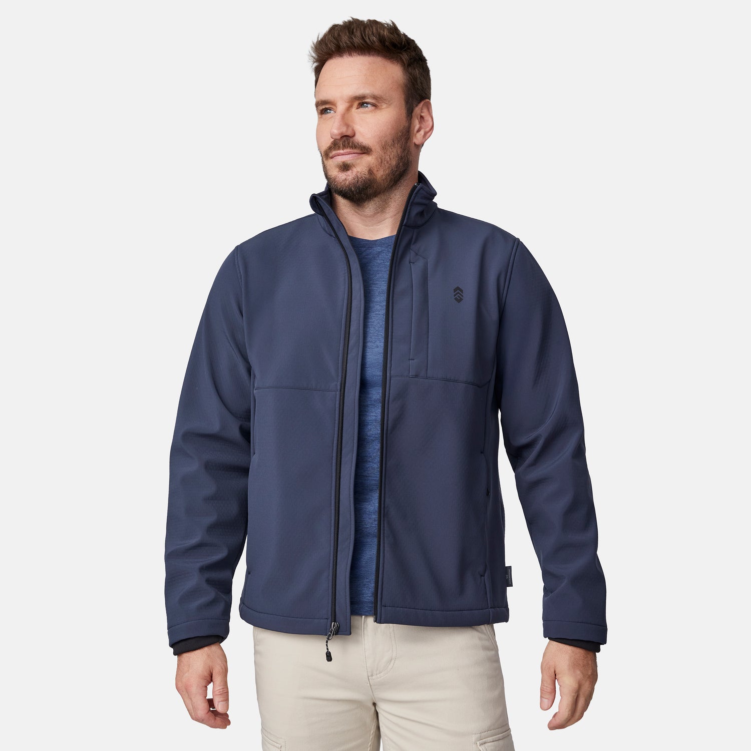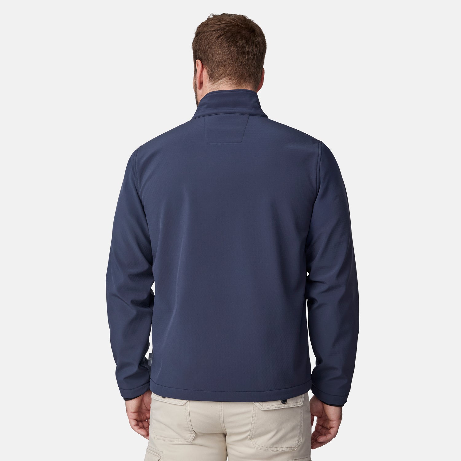 ![[Matt is 6'2" wearing size M.] Men’s Free Country navy zip-front softshell jacket with high stand collar and minimalistic design, worn over a light blue shirt and paired with blue jeans—delivering a clean, everyday look with subtle utility and transitional weather appeal.](http://freecountry.com/cdn/shop/files/543MOF5138NAVY_108_FC.jpg?v=1757946876&width=860)