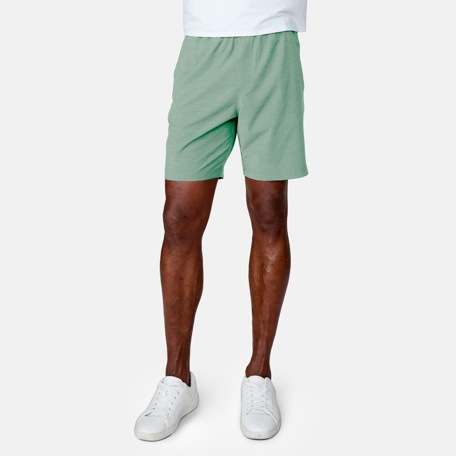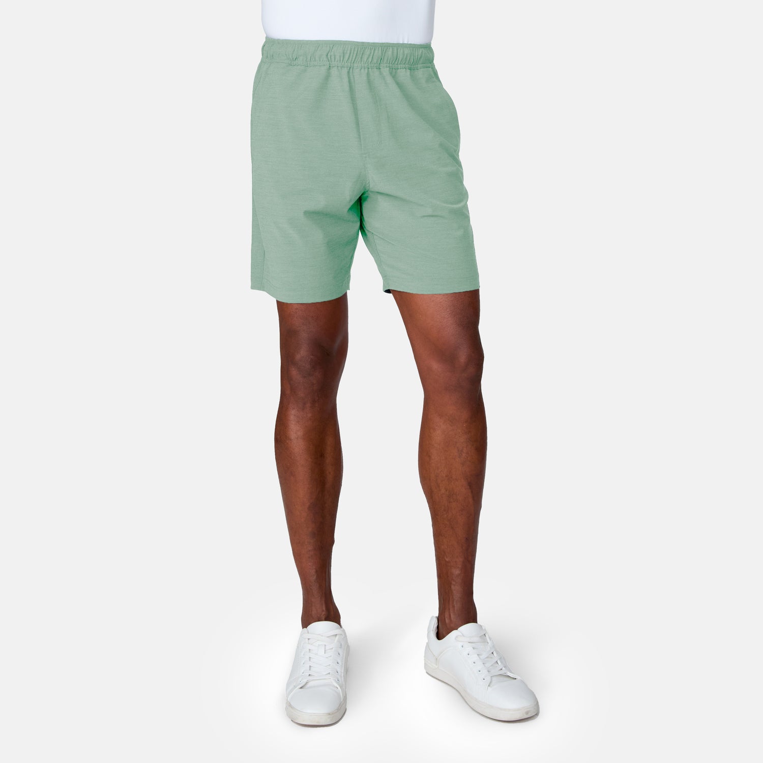 ![[Anderson is 6'2" wearing a size Medium.]  Man wearing the Free Country Men's Boardwalk Woven Pull-On Trek Short in Basil, size M, made from lightweight breathable polyester fabric and featuring an elastic waistband and slanted pockets, styled with a white t shirt #color_ basil](http://freecountry.com/cdn/shop/files/16JMAS5612_Basil_SS25-FC-PDP_1.jpg?v=1750698343&width=860)