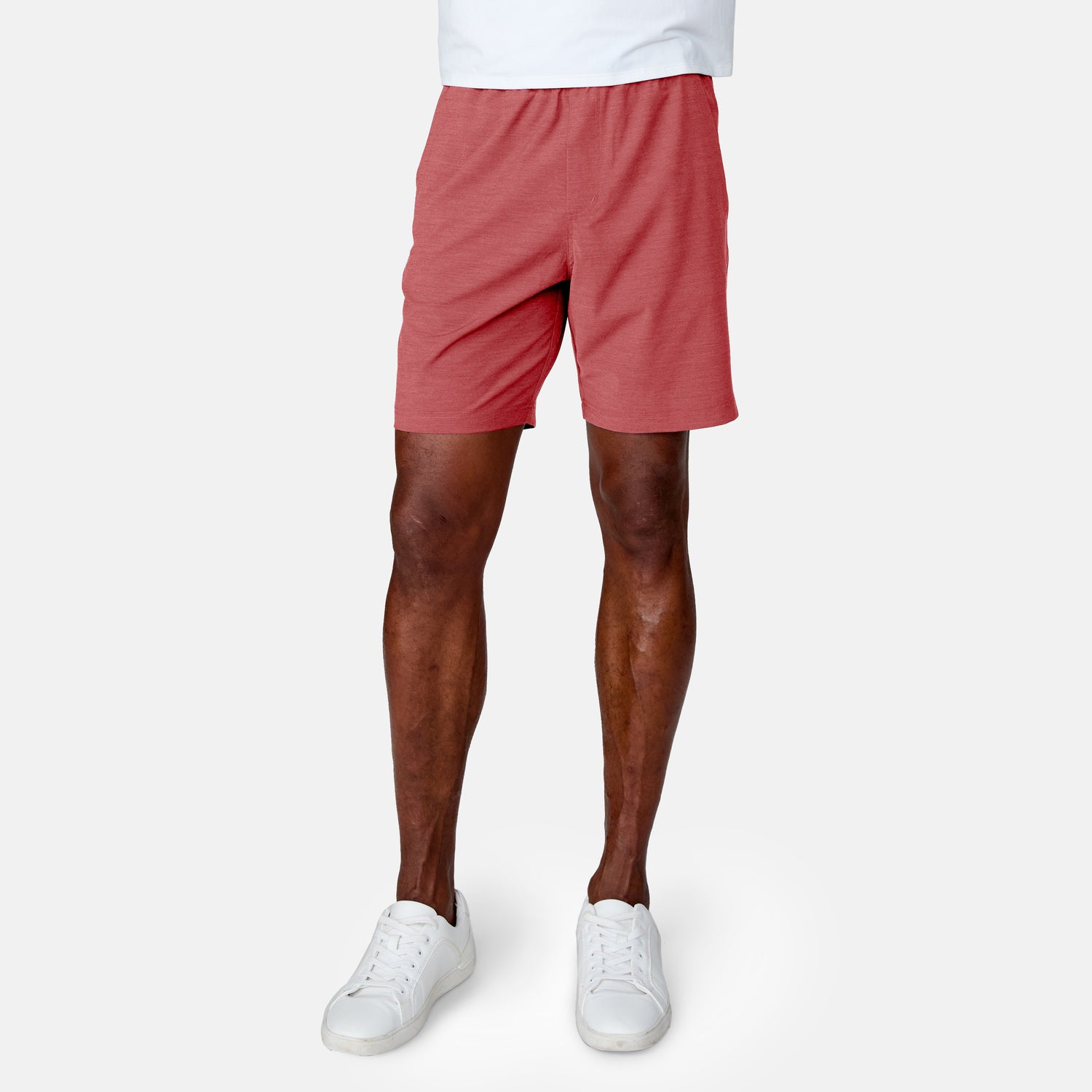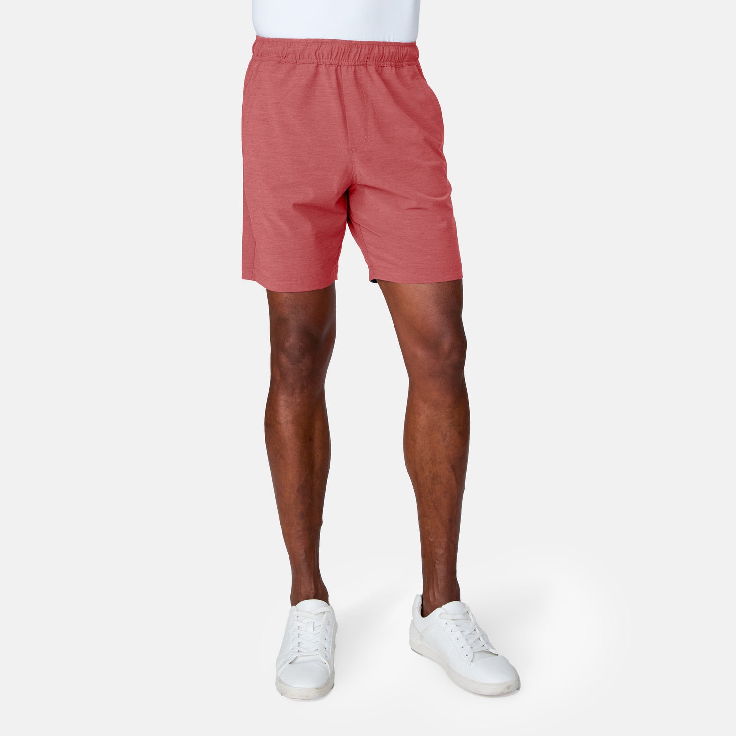 ![[Anderson is 6'2" wearing a size Medium.]  Man wearing the Free Country Men's Boardwalk Woven Pull-On Trek Short in Red, size M, made from lightweight breathable polyester fabric and featuring an elastic waistband and slanted pockets, styled with a white t shirt #color_ red](http://freecountry.com/cdn/shop/files/16JMAS5612_Red_SS25-FC-PDP_2.jpg?v=1750699132&width=860)