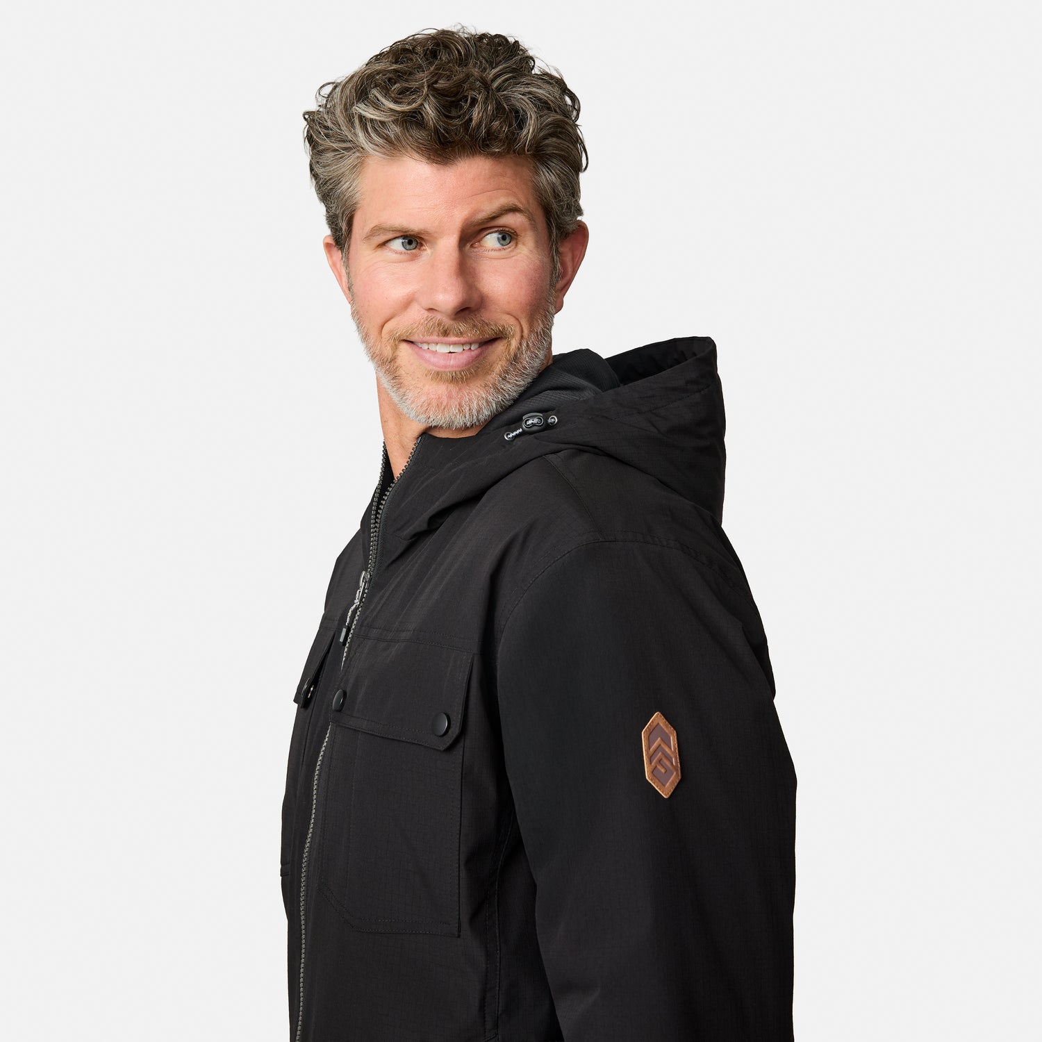 ![[Kolby is 6'2" wearing size M.] Men’s Free Country black hooded jacket with full-zip front, dual flap chest pockets, and button cuffs—featuring a clean silhouette and utility styling. Paired with brown pants for a rugged, cold-weather look that blends trail-ready function with everyday wearability.](http://freecountry.com/cdn/shop/files/548MOF5254_BLACK_190_FC.jpg?v=1753718936&width=860)