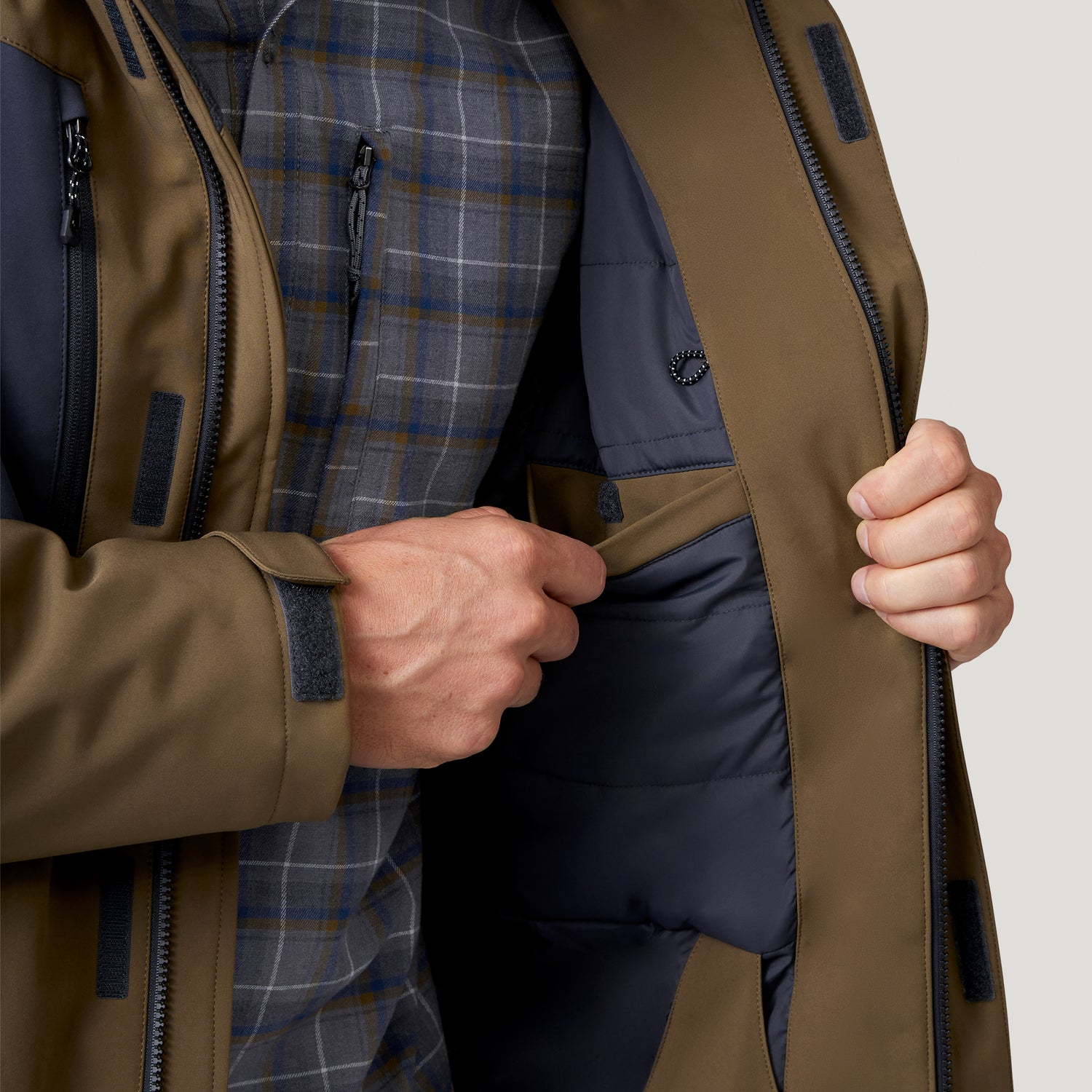 This is the jacket you'll want to have during cold weather conditions. Our three-layer bonded fabric is built to perform and can withstand it all! The interior lining is packed with a warm fill to keep your body heat locked in while the inner snow skirt keeps all moisture out! We've extended this to the water and wind resistant shell so you never have to worry about rain or snow seeping in. This is the ultimate cold weather must-have!