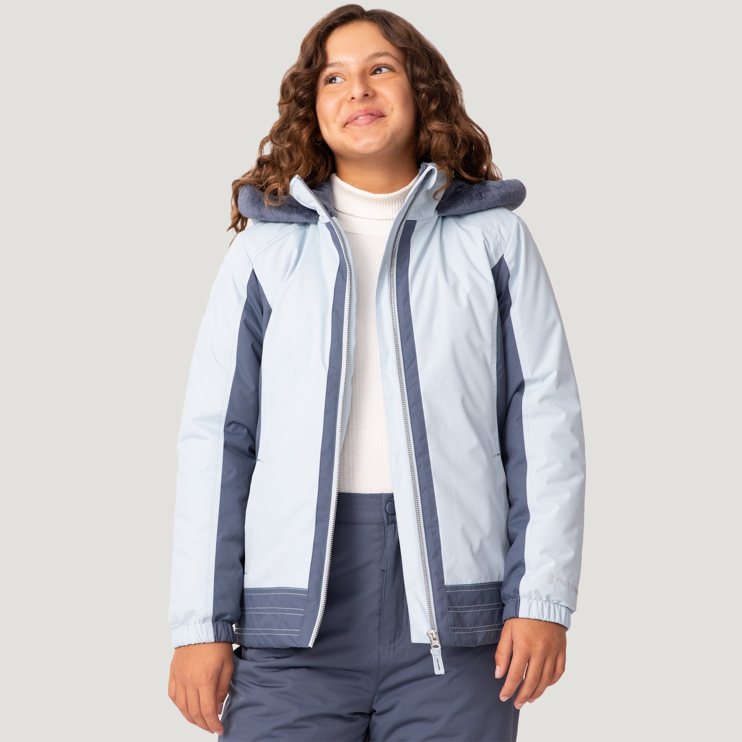 ![[Model is wearing a size Medium.] Girl wearing the Free Country Girls' Boarder Jacket in light blue and navy, featuring Butter Pile® lining, a wind- and water-resistant shell, and a hooded design, paired with matching navy snow pants.](http://freecountry.com/cdn/shop/files/5GOF4212SKYSLEET-CHARCOALGREY_2408_FW24-138.jpg?v=1747751104&width=860)