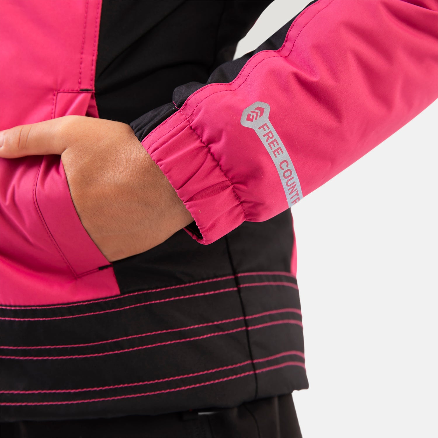 ![[Model is wearing a size Medium.] Girl wearing the Free Country Girls' Boarder Jacket in bright pink and black, featuring Butter Pile® lining, a wind- and water-resistant shell, and a hooded design.](http://freecountry.com/cdn/shop/files/5_5GOF4212SKidsSki0038-2.jpg?v=1751990579&width=860)