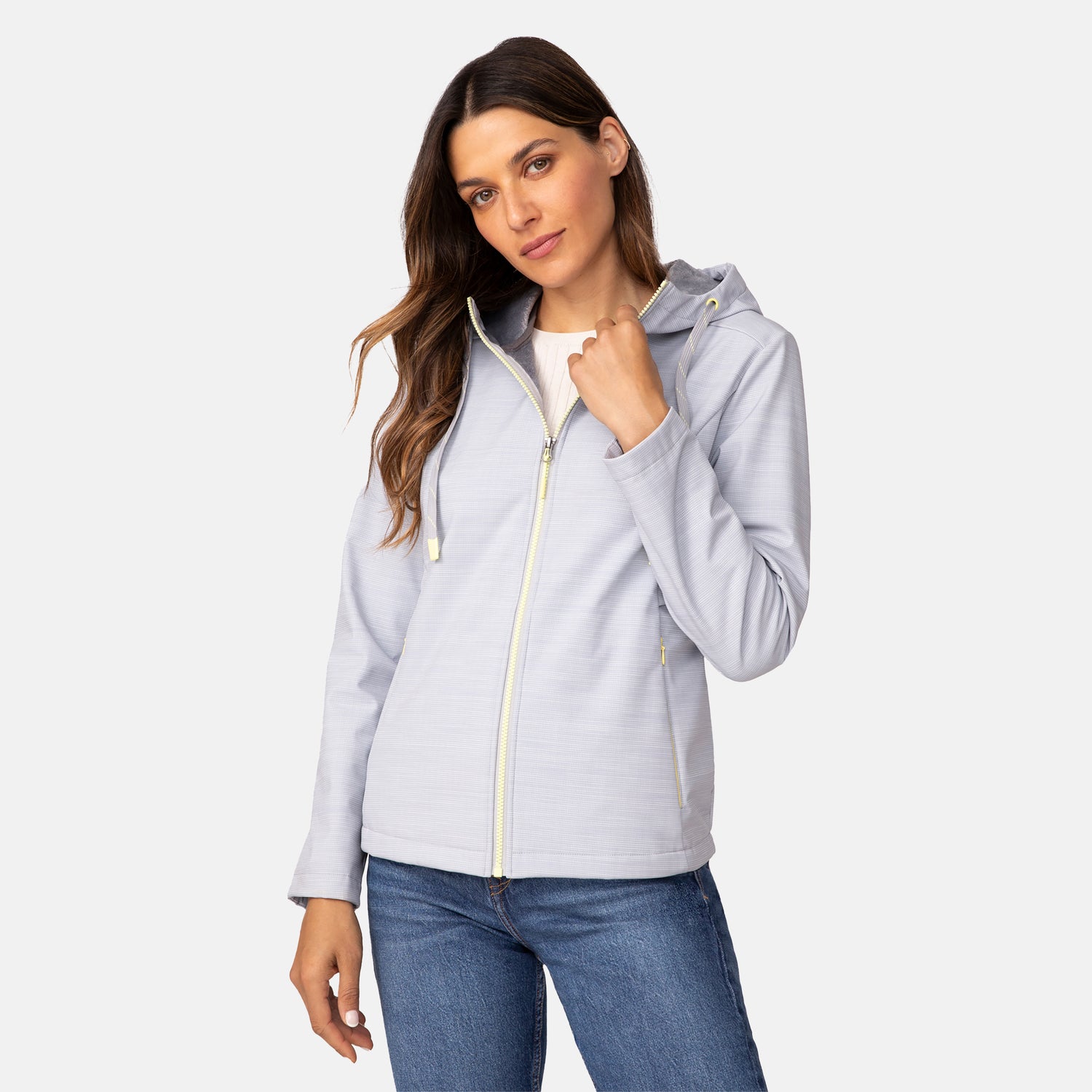 ![[Olga is 5’9” wearing a size Small.] Woman wearing Free Country Women's Alps Super Softshell® Jacket in textured ligth grey with a full front zipper opening, soft lining, attached hood with adjustable drawcords, and water resistant and wind resistant stretch performance fabric, light grey background. Perfect women’s jacket for fall weather.](http://freecountry.com/cdn/shop/files/518-LOF4193SILVERCHIP_2407_FW24-039.jpg?v=1755786778&width=860)