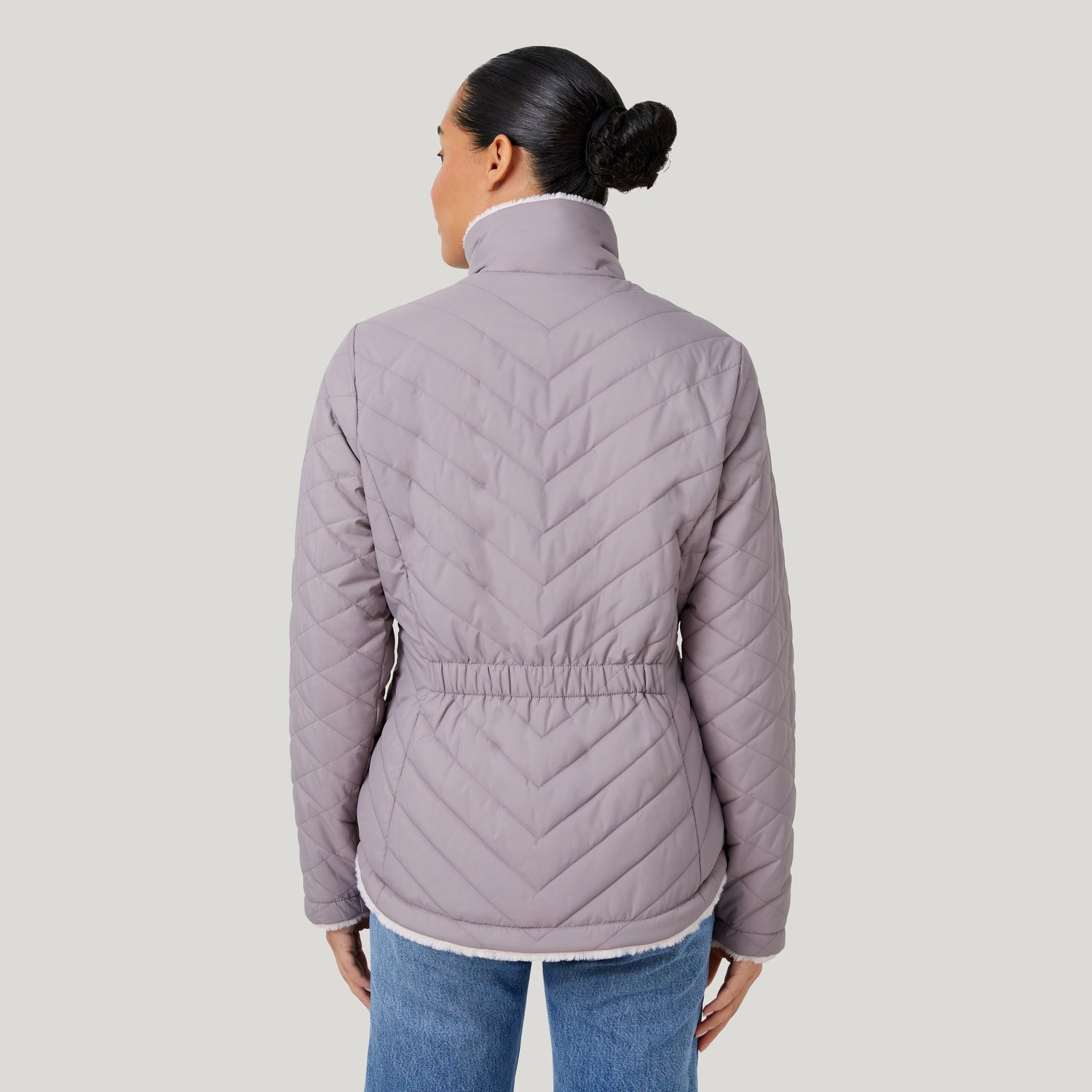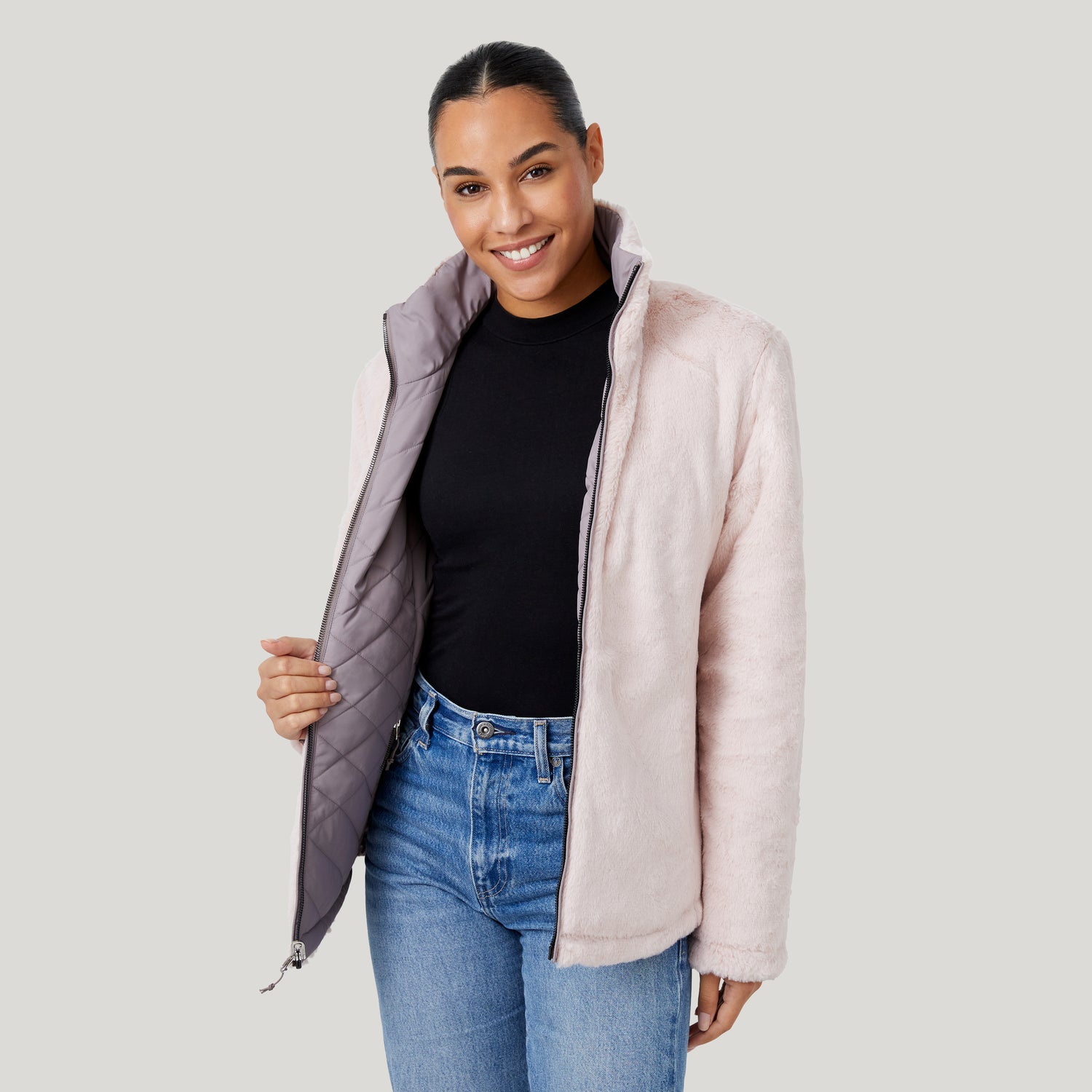 There's a reason why our Cloud collection is one of our favorites. Experience the soft-as-a-cloud touch with this reversible faux fur jacket that has high quality fill made from REPREVE® recycled plastic bottles. This jacket was built for cold weather and has wind resistant features and a stand collar so you're entirely protected and prepared to take on the day.