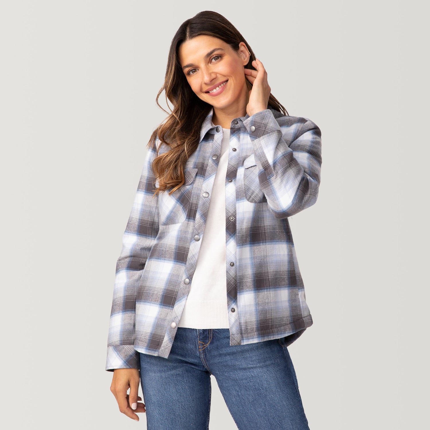 ![[Megan is 5’6” wearing a size Small.] Women's Koshi Adirondack Flannel Shirt Jacket - Stormy Plaid - S #color_stormy-plaid](http://freecountry.com/cdn/shop/files/324LOF32431423STORMY_2306_FW-033.jpg?v=1751997291&width=860)