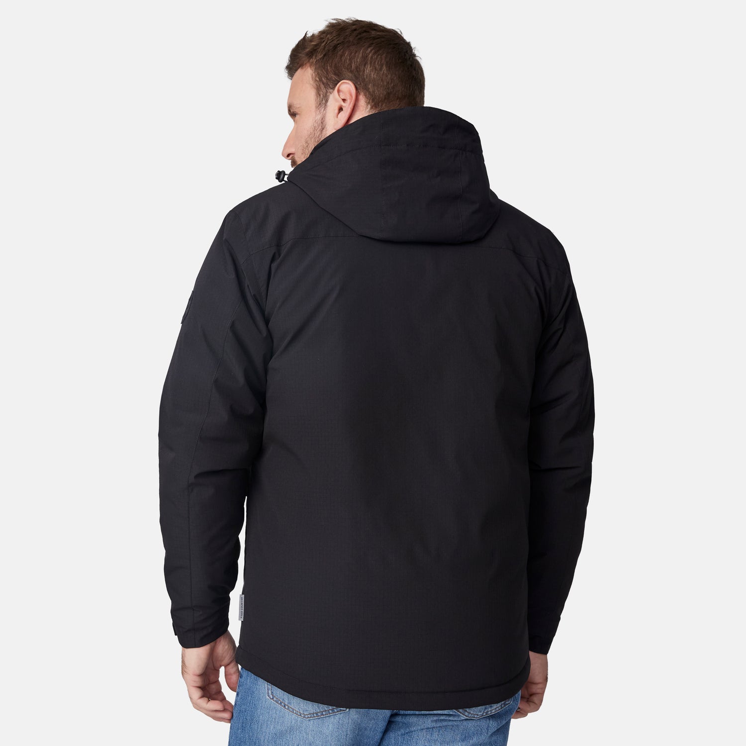 ![[Joe is 6'0" wearing size M.] Men’s Free Country black hooded utility jacket featuring dual zippered chest pockets, flap waist pockets, and rugged outdoor styling—paired with blue jeans for a functional, adventure-ready look.](http://freecountry.com/cdn/shop/files/548MOF5293_BLACK_385_FC.jpg?v=1754333012&width=860)