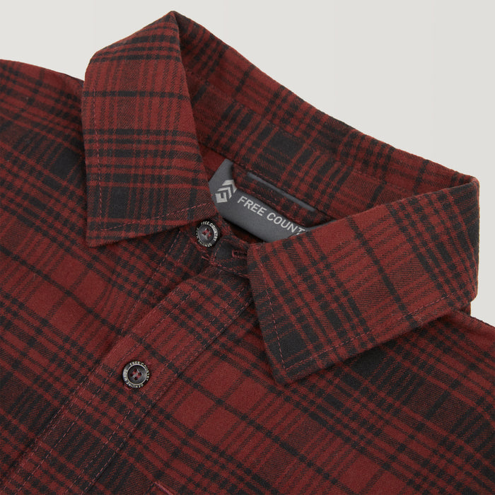 ![[Matt is 6'2" wearing size M.] Men’s long-sleeve plaid button-up shirt in red, blue, and white — casual fit with front buttons and chest detailing](http://freecountry.com/cdn/shop/files/324MAF5302_FC_2240_RUBY_057_FC.jpg?v=1755702107&width=860)