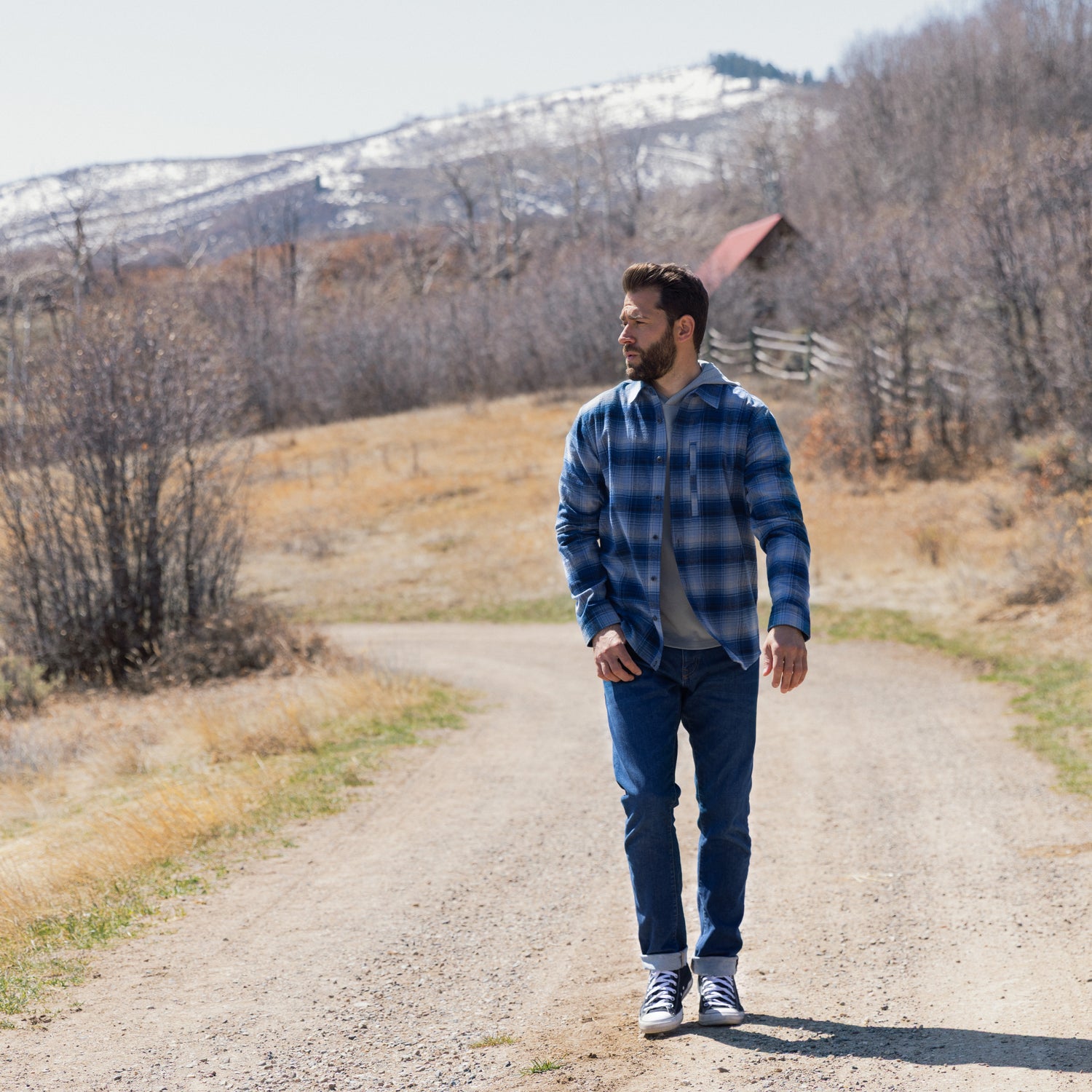 ![[Kolby is 6'2" wearing size M.] Men’s blue and white plaid button-up shirt with long sleeves, chest pocket, and collar — styled with brown pants for a classic casual look](http://freecountry.com/cdn/shop/files/324MAF5302_FC2240_NAVY_172_FC_2bd990d9-73ee-4ed0-921f-4635c35a7714.jpg?v=1755702107&width=860)