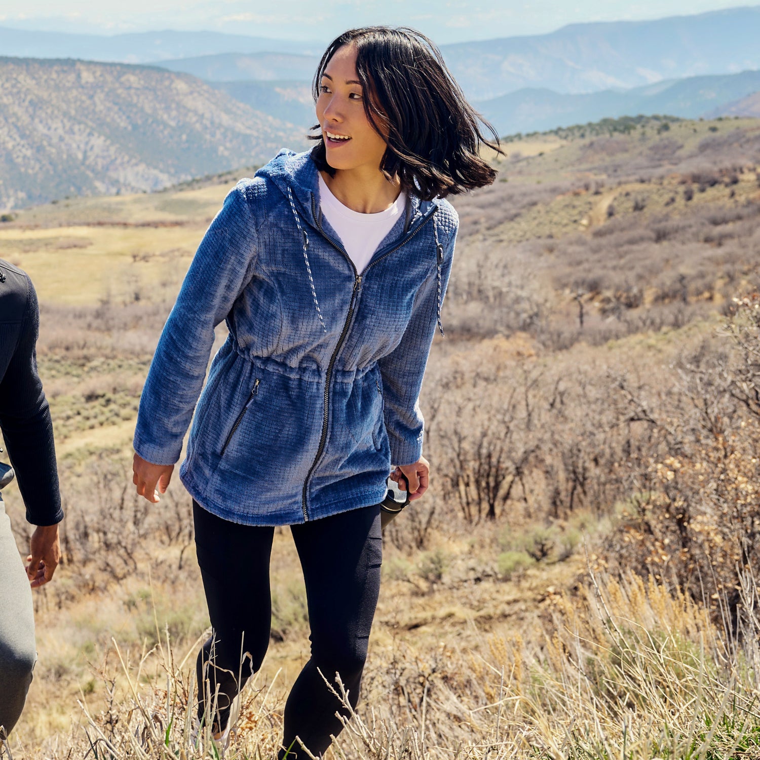 ![[CJ is 5'10" wearing size S.] Women’s Free Country plush blue hooded jacket with full zip-front closure, adjustable drawstring hood, elastic cinched waistband, and dual side pockets—designed for cozy comfort and casual style.](http://freecountry.com/cdn/shop/files/536LOF5897_STORMY_2506_SS25-011_FC.jpg?v=1755026118&width=860)