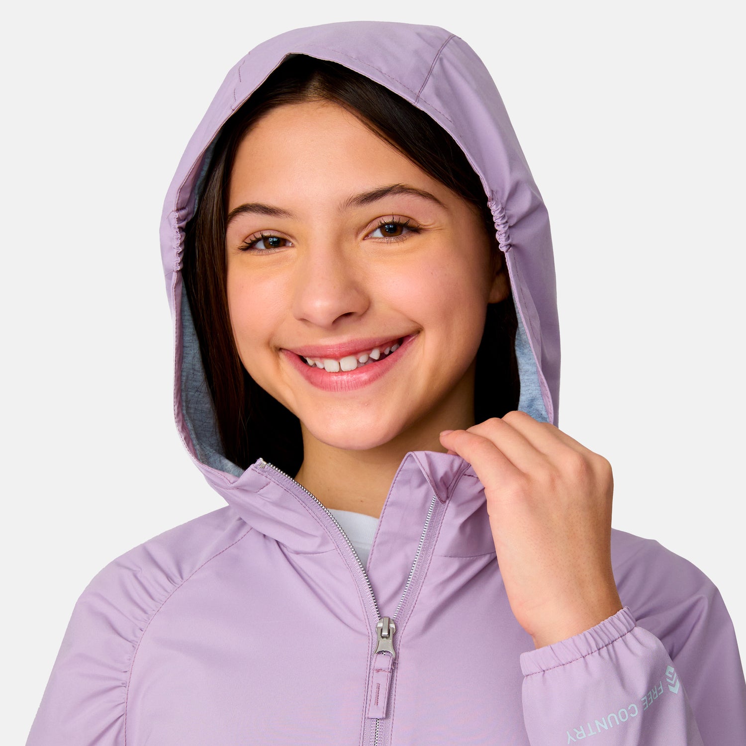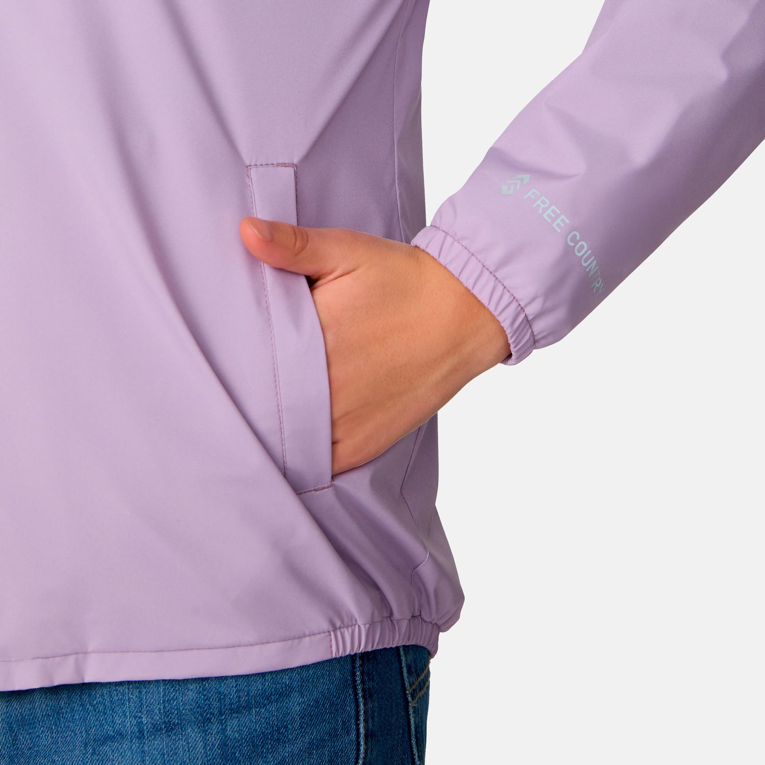 ![[Model is wearing a size Medium.] Girl wearing the Free Country Girls' High Stretch Windshear Jacket in Wisteria, size M, made from recycled polyester fabric that provides four way stretch and wind and water resistance styled with a white t shirt and blue jeans #color_ wisteria](http://freecountry.com/cdn/shop/files/553GOS5000__wisteria__SS25-FC-PDP_1.jpg?v=1750694808&width=860)