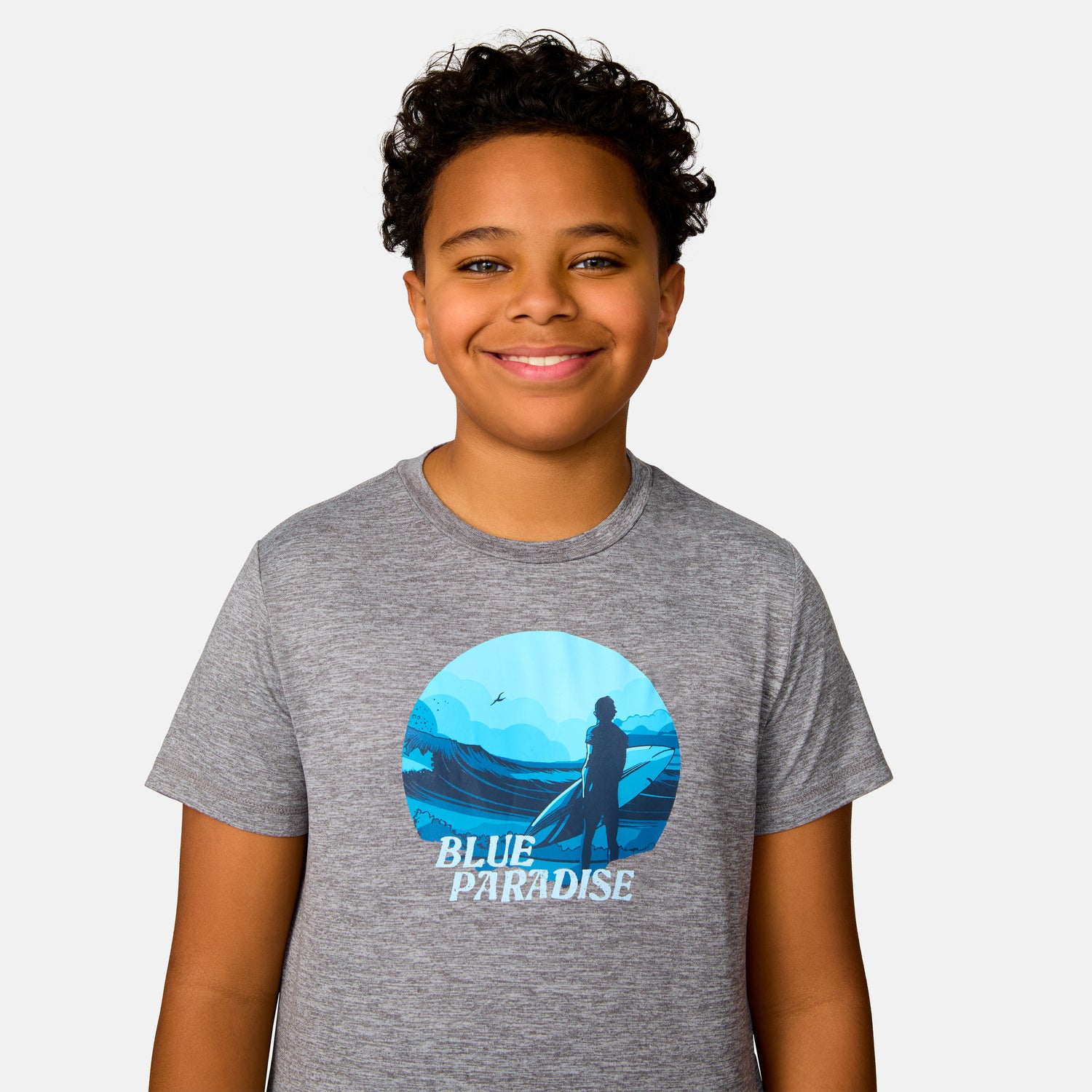 Adventure starts with the right gear, and this super-soft crew neck is up for the challenge. Designed for those who never stop exploring, its graphic sets the tone for endless outdoor fun. Our Microtech® Chill fabric helps regulate his temperature to keep him cool, while moisture-wicking and anti-odor technology ensures he stays dry and stink-free. The ultra-soft feel, four-way stretch and breathable design make it a favorite for everything from backyard escapades to weekend hikes. Plus, with UPF 50+ protection, he’s covered for every sunny-day adventure.