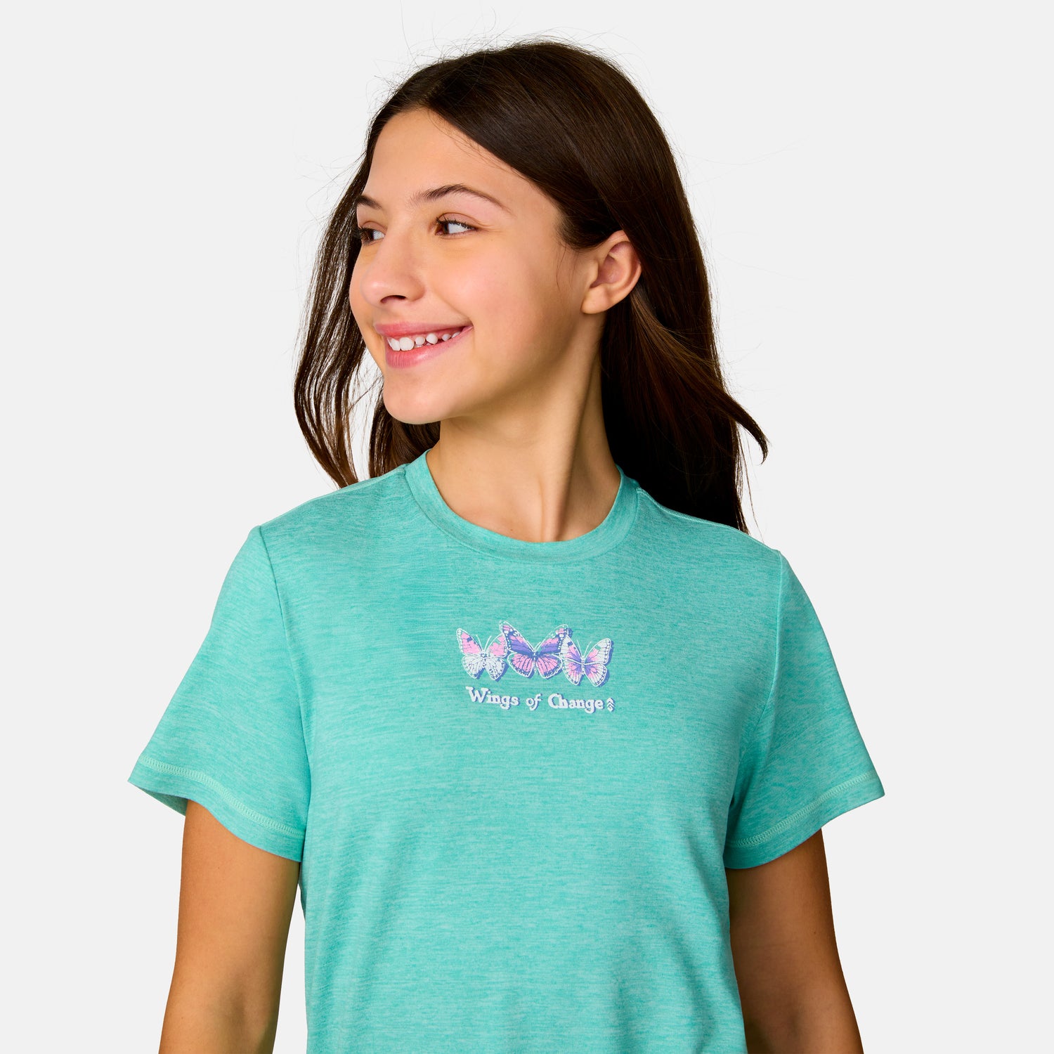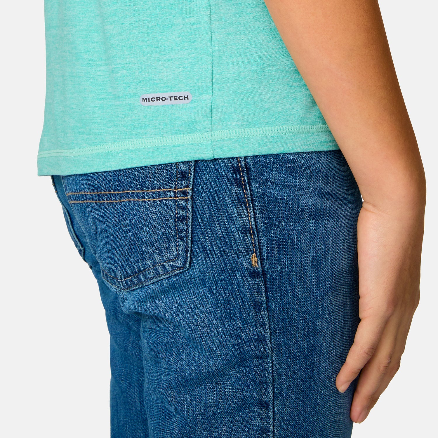 Adventure starts with the right gear, and this super-soft crew neck is up for the challenge. Designed for those who never stop exploring, its graphic sets the tone for endless outdoor fun. Our Microtech® Chill fabric helps regulate her temperature to keep her cool, while moisture-wicking and anti-odor technology ensures she stays dry and stink-free. The ultra-soft feel, four-way stretch and breathable design make it a favorite for everything from backyard escapades to weekend hikes. Plus, with UPF 50+ protection, she’s covered for every sunny-day adventure.
