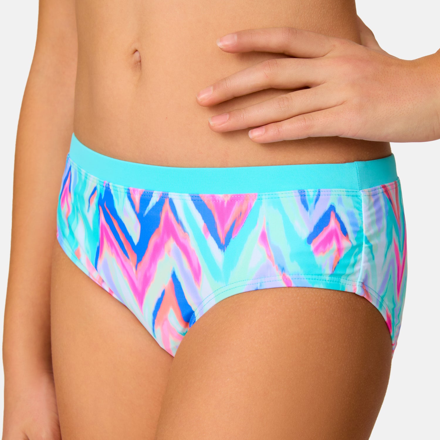 ![[Model is wearing a size Medium.] Girl wearing the Free Country Girls' Fresco Rash Guard and Bikini Swim Set in Aquatopia Oasis Chevron, size M, featuring a raglan sleeve rash guard and racerback tankini top and lined bikini bottom made from recycled polyester fabric that provides four way stretch and upf protection #color_ Aquatopia-Oasis-Chevron](http://freecountry.com/cdn/shop/files/SRGSS5200__Aquatopia-Oasis-Chevron__SS25-FC-PDP_6.jpg?v=1751387407&width=860)