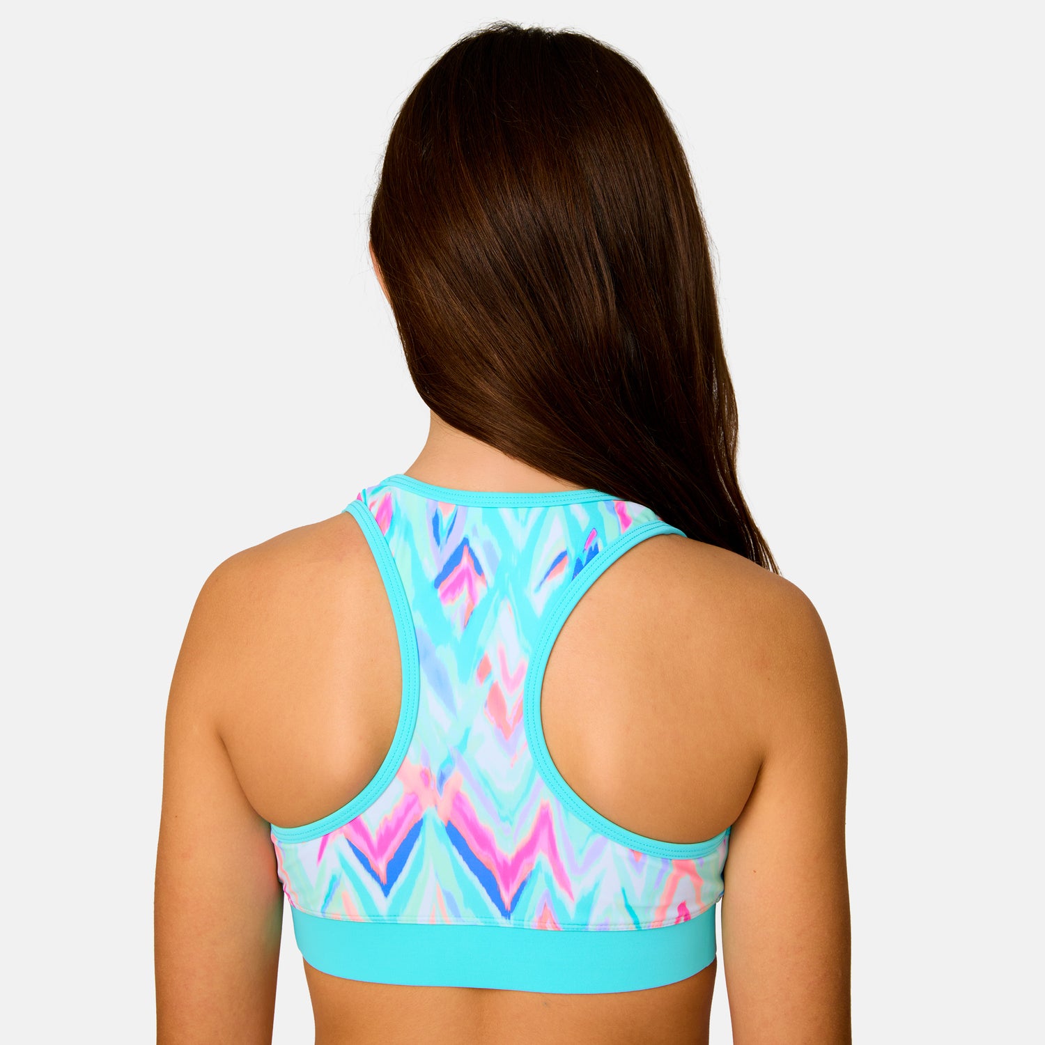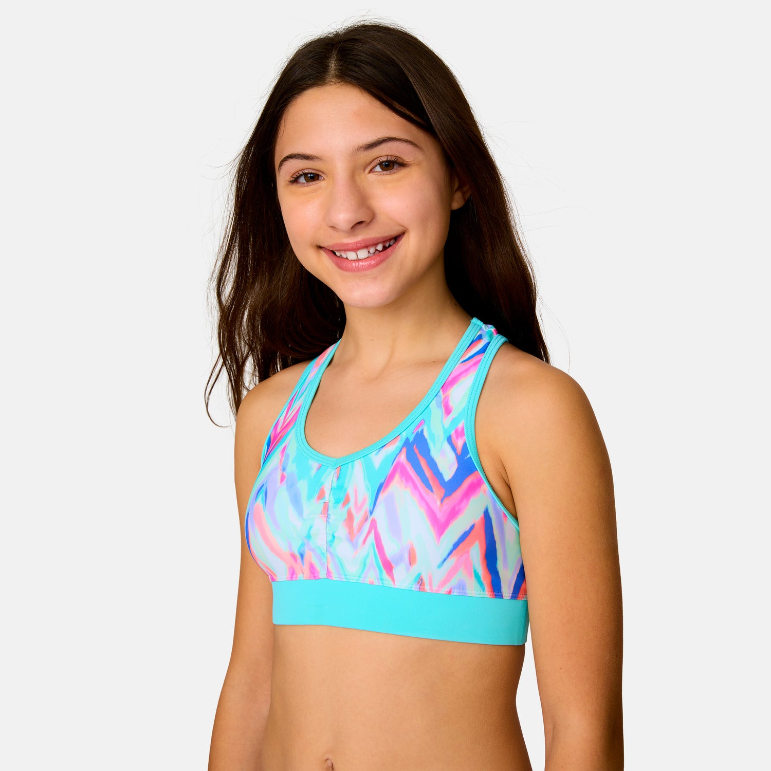 ![[Model is wearing a size Medium.] Girl wearing the Free Country Girls' Fresco Rash Guard and Bikini Swim Set in Aquatopia Oasis Chevron, size M, featuring a raglan sleeve rash guard and racerback tankini top and lined bikini bottom made from recycled polyester fabric that provides four way stretch and upf protection #color_ Aquatopia-Oasis-Chevron](http://freecountry.com/cdn/shop/files/SRGSS5200__Aquatopia-Oasis-Chevron__SS25-FC-PDP_7.jpg?v=1751387422&width=860)