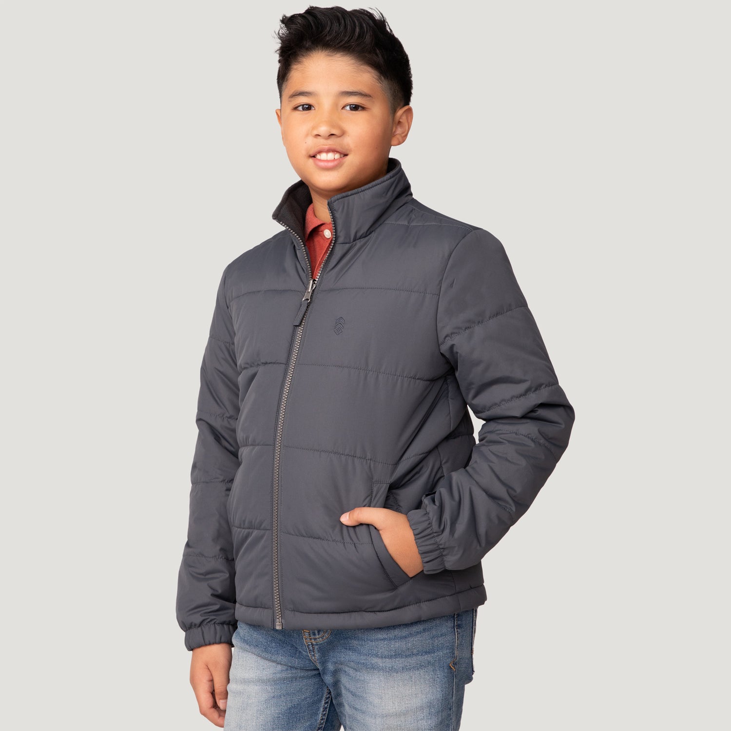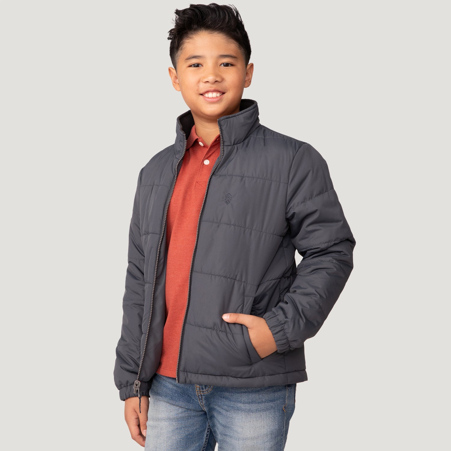 ![[Model is wearing a size Medium.] Young boy wearing the Free Country Boys' Parka Jacket in dark color with a hood and subtle chest pattern, smiling against a plain background.](http://freecountry.com/cdn/shop/files/154-BOF4301BARK_2408_FW24-035.jpg?v=1743450058&width=860)