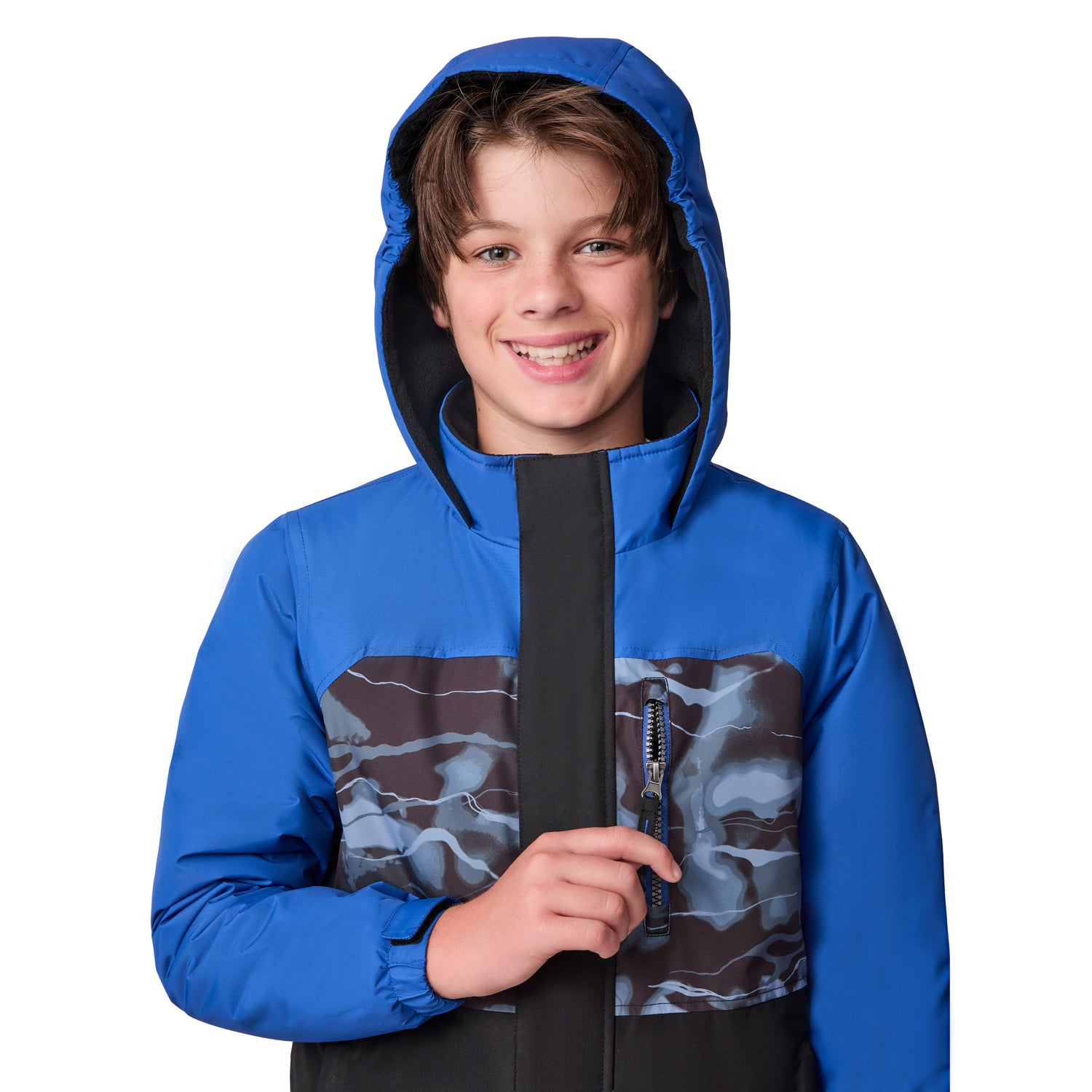 Made from 100% machine-washable polyester, the jacket features a fleece-lined hood for cozy protection, a wind-resistant shell to block out gusts, and a drop tail hem for added coverage. Designed to handle all-day play, it's the perfect outer layer for winter fun.