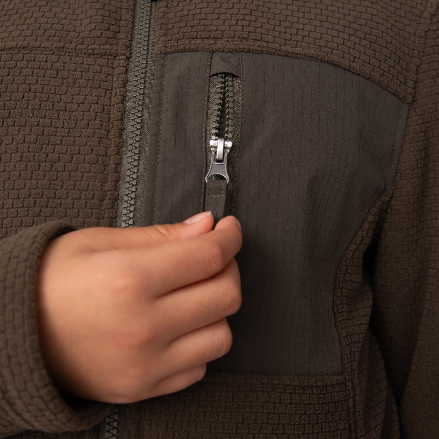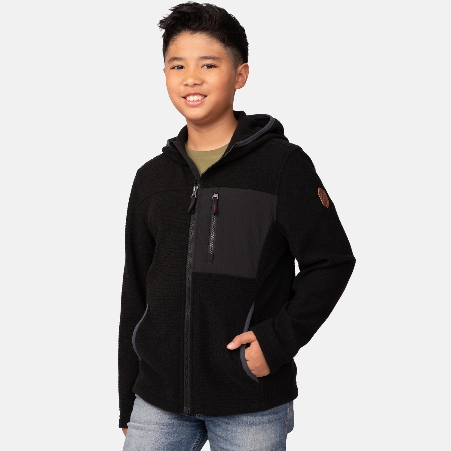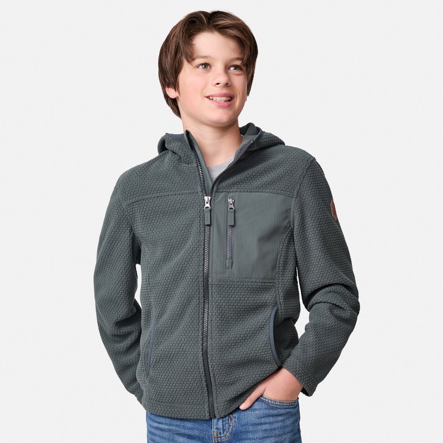 From hiking to hanging out, let your little guy embrace the chill in style with this super-soft hoodie. Crafted from double-faced brick fleece, this jacket delivers lightweight warmth and superior comfort. With an attached hood, front pockets and matte stretch binding, it's ready to keep up with all-day play. Plus, a ripstop fabric chest pocket with a zipper closure adds a cool, functional touch. Machine washable and designed for durability, it’s the perfect go-to layer for active days and outdoor adventures.