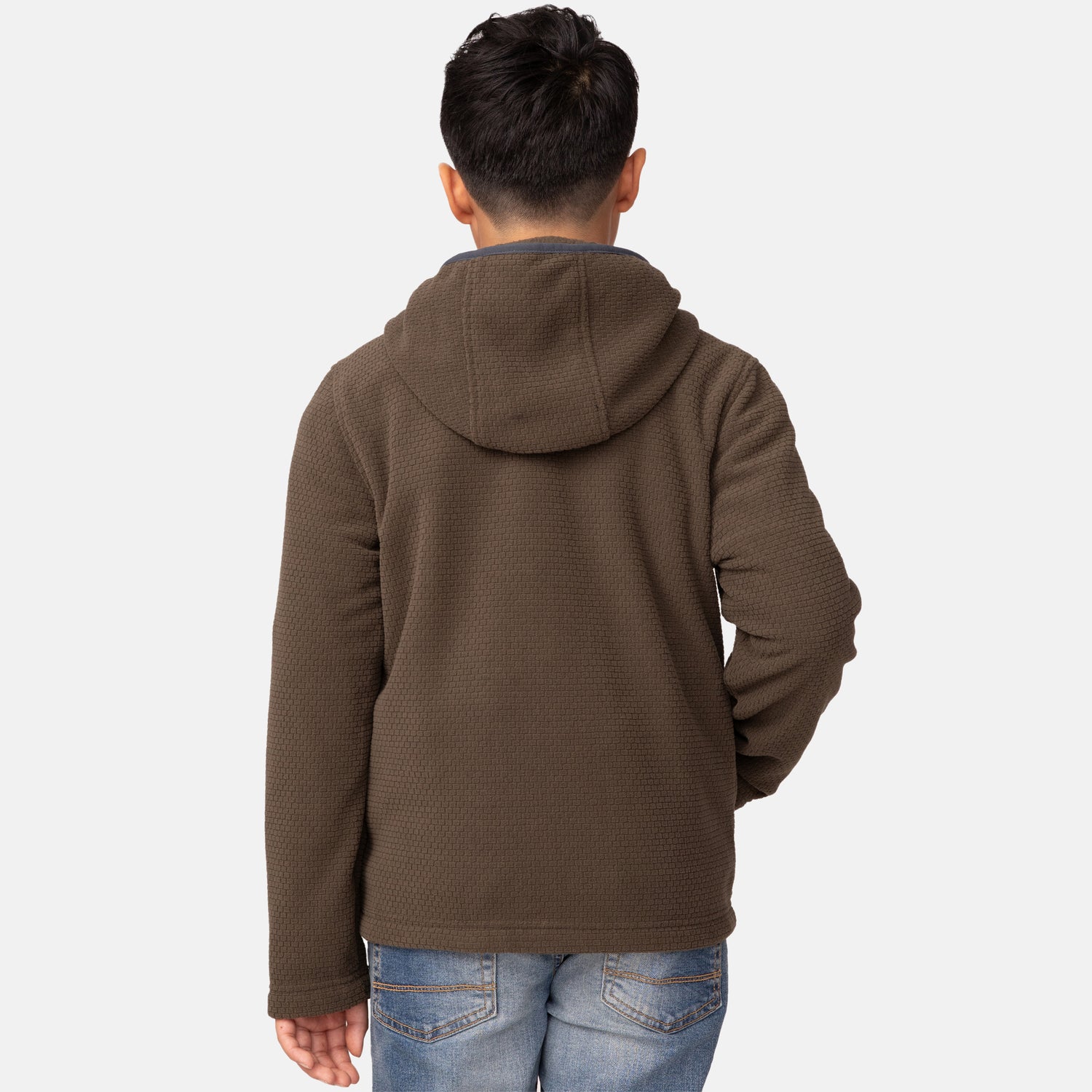 ![[Model is wearing a size Medium.] Boy wearing Free Country Boys' Brick Fleece Hoodie Jacket in brown with a soft lining, zipper pocket, smiling with hand in pocket, light grey background](http://freecountry.com/cdn/shop/files/539-BOF4802OLIVE_2408_FW24-063.jpg?v=1755698276&width=860)