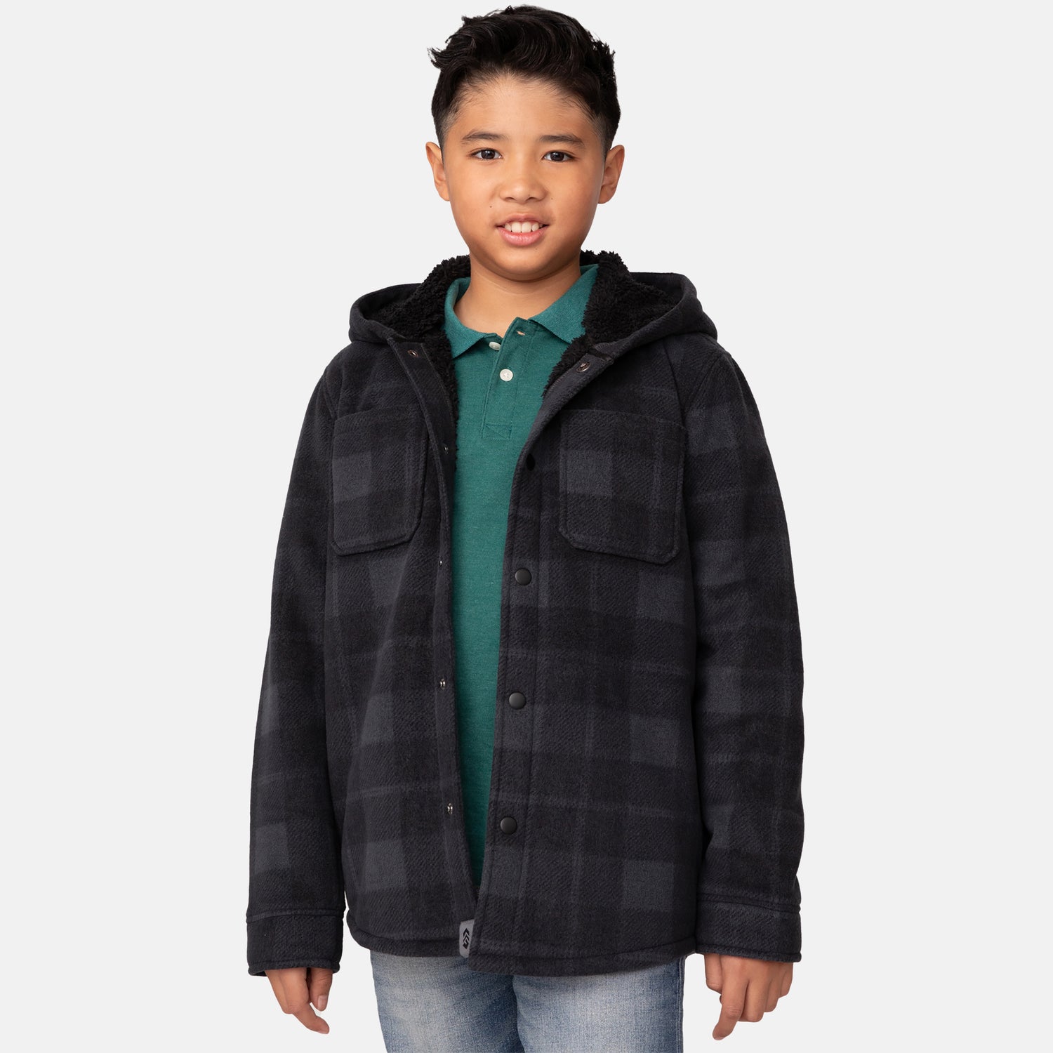 ![[Model is wearing a size Medium.] Boy wearing the Free Country Boys' Chill Out Fleece Jacket in red and grey plaid with a hood, standing with hands in jeans pockets against a plain light gray background.](http://freecountry.com/cdn/shop/files/419-KOF4803FC-1455-COAL_2408_FW24-045.jpg?v=1755700210&width=860)