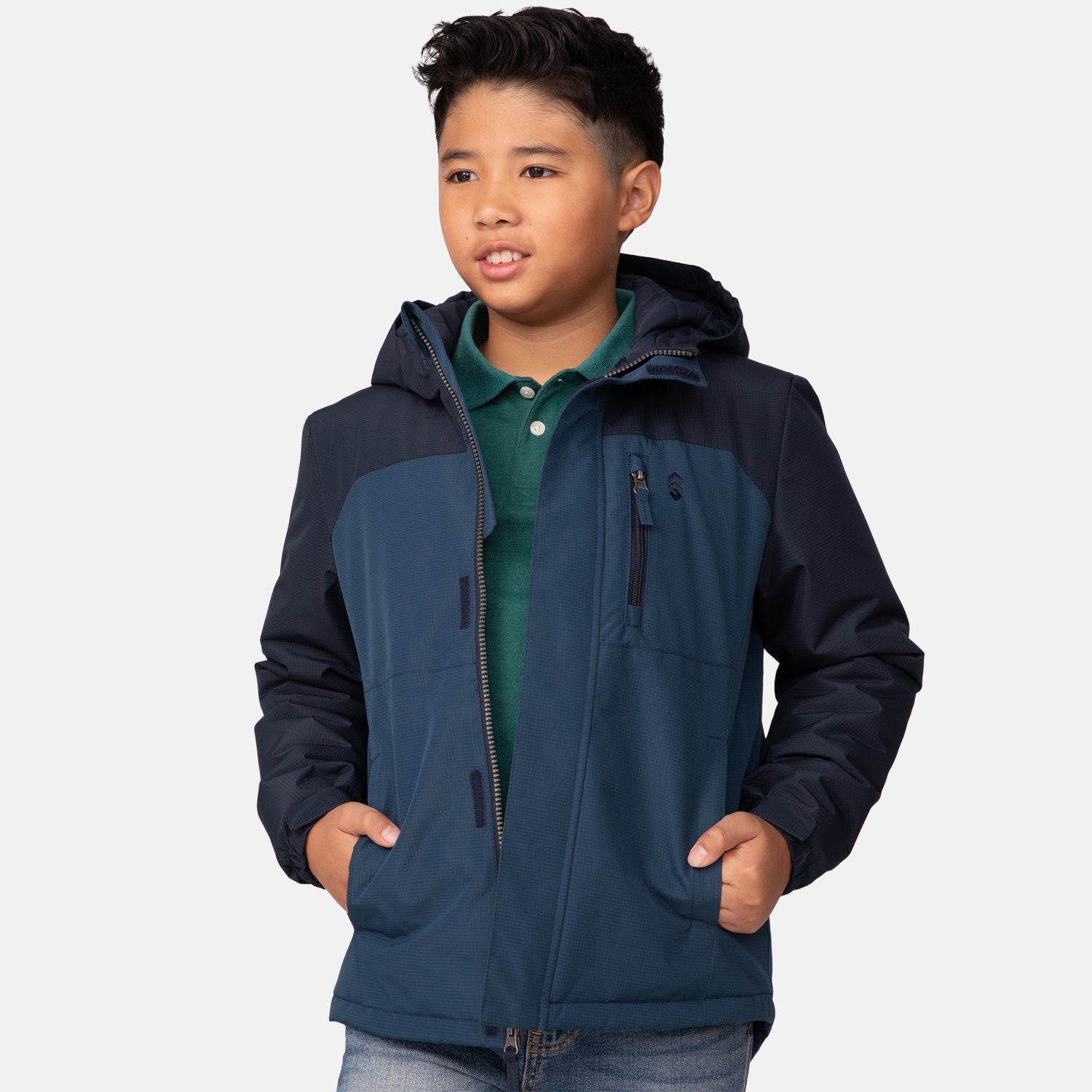 ![[Model is wearing size M.] Boy’s blue and navy hooded jacket with zippered chest pocket and side hand pockets — insulated cold-weather layer for everyday wear](http://freecountry.com/cdn/shop/files/90-BOF4204_OCEAN_2408_FW24-054.jpg?v=1755614971&width=860)