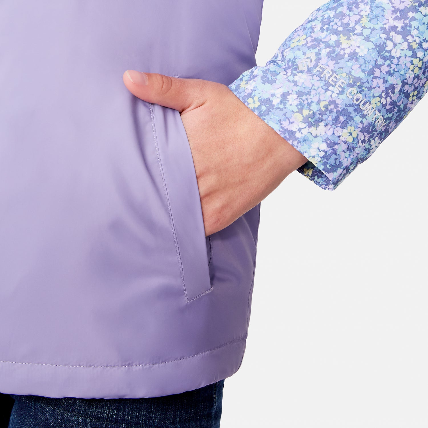 ![[Samantha is wearing size M.] Women's Free Country softshell jacket with floral upper print and solid lavender lower panels, featuring a zip-front closure and soft purple inner lining—designed for lightweight warmth and outdoor versatility.](http://freecountry.com/cdn/shop/files/87KOF5304FC200PETALSCHAMBRAY_216_FC.jpg?v=1753898634&width=860)
