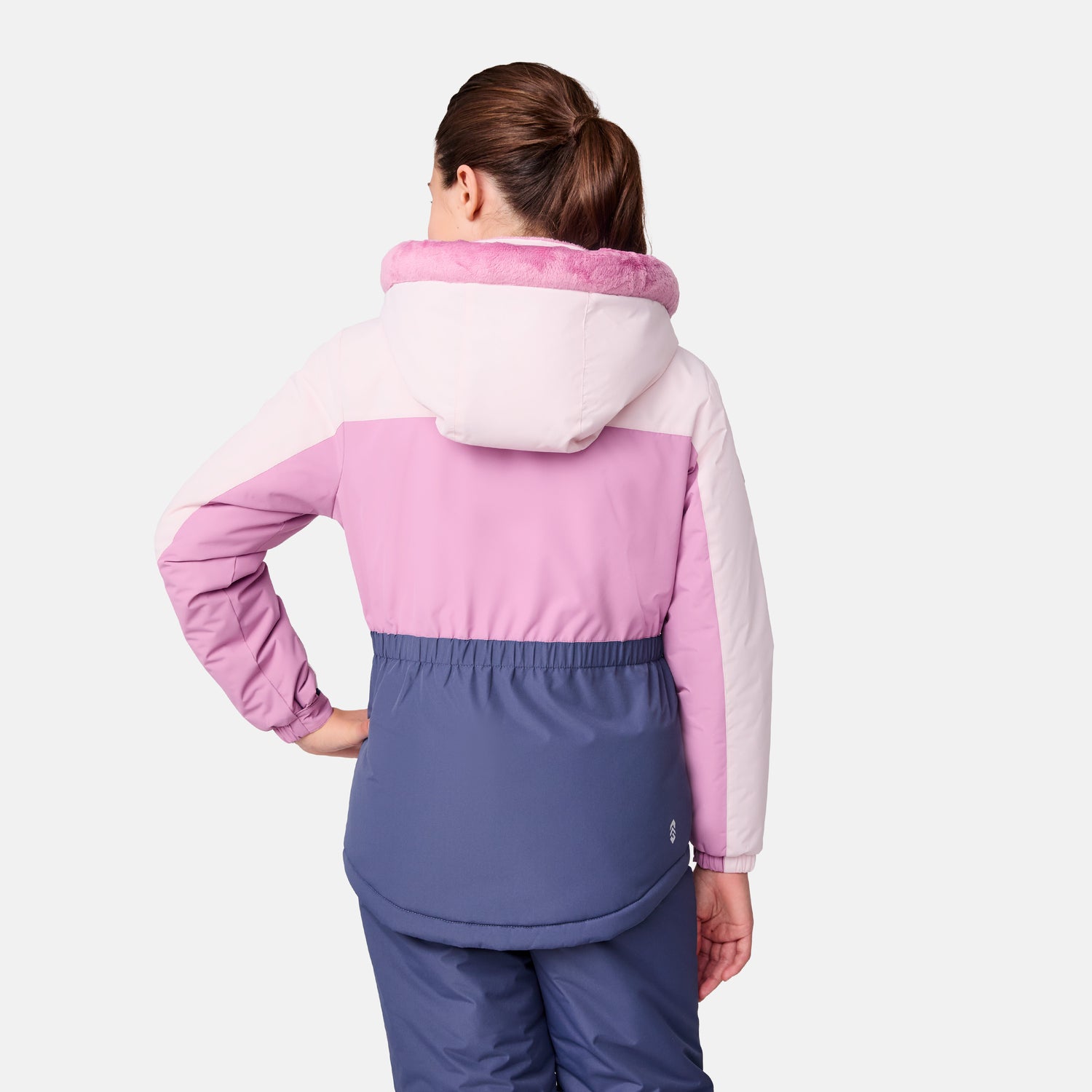 ![[Samantha is wearing size M.] Girls' colorblock purple and black hooded winter jacket with front zipper and zippered hand pockets — insulated outerwear for cold-weather adventures](http://freecountry.com/cdn/shop/files/5GOF5218_SMOKEY_LAVENDER_298_fc.jpg?v=1755618119&width=860)