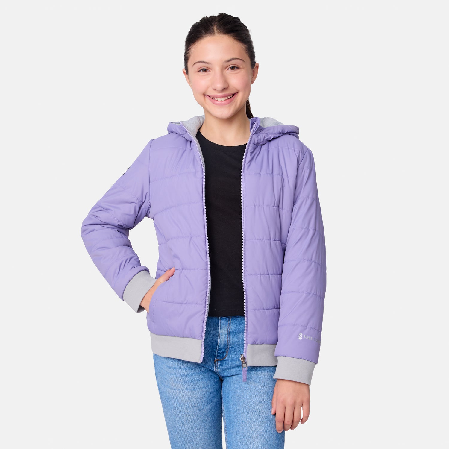 ![[Samantha is wearing size M.] Model wearing a Free Country light purple puffer jacket with zip-front closure, gray ribbed cuffs and hem, and matching hoodāreverses to a casual gray hoodie for versatile styling, shown with relaxed blue jeans for a laid-back winter look.](http://freecountry.com/cdn/shop/files/87KOF5501RLAVENDAR_252_FC.jpg?v=1753903393&width=860)
