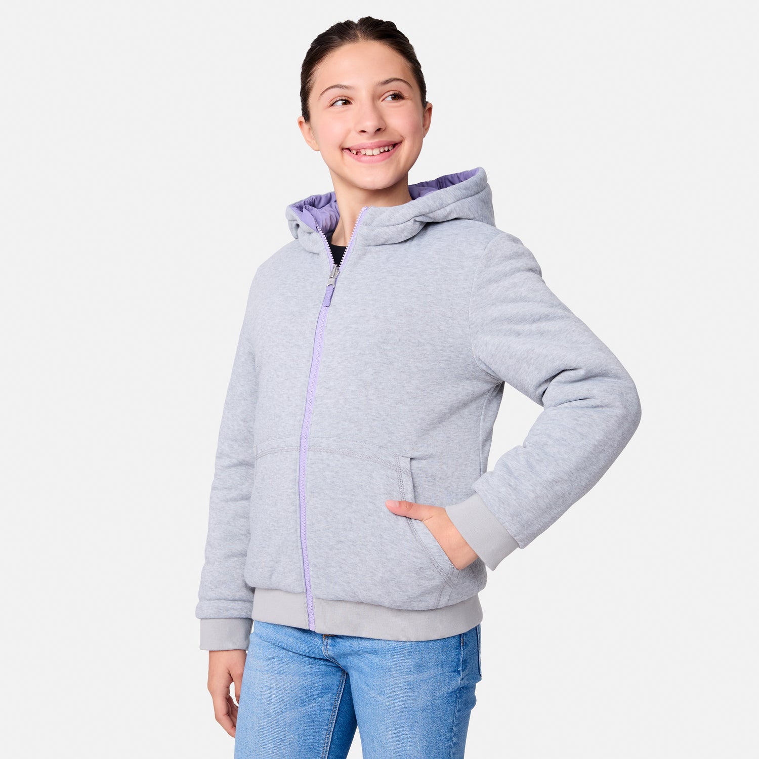 ![[Samantha is wearing size M.] Model wearing a Free Country light purple puffer jacket with zip-front closure, gray ribbed cuffs and hem, and matching hoodāreverses to a casual gray hoodie for versatile styling, shown with relaxed blue jeans for a laid-back winter look.](http://freecountry.com/cdn/shop/files/87KOF5501RLAVENDAR_251_FC.jpg?v=1753903393&width=860)
