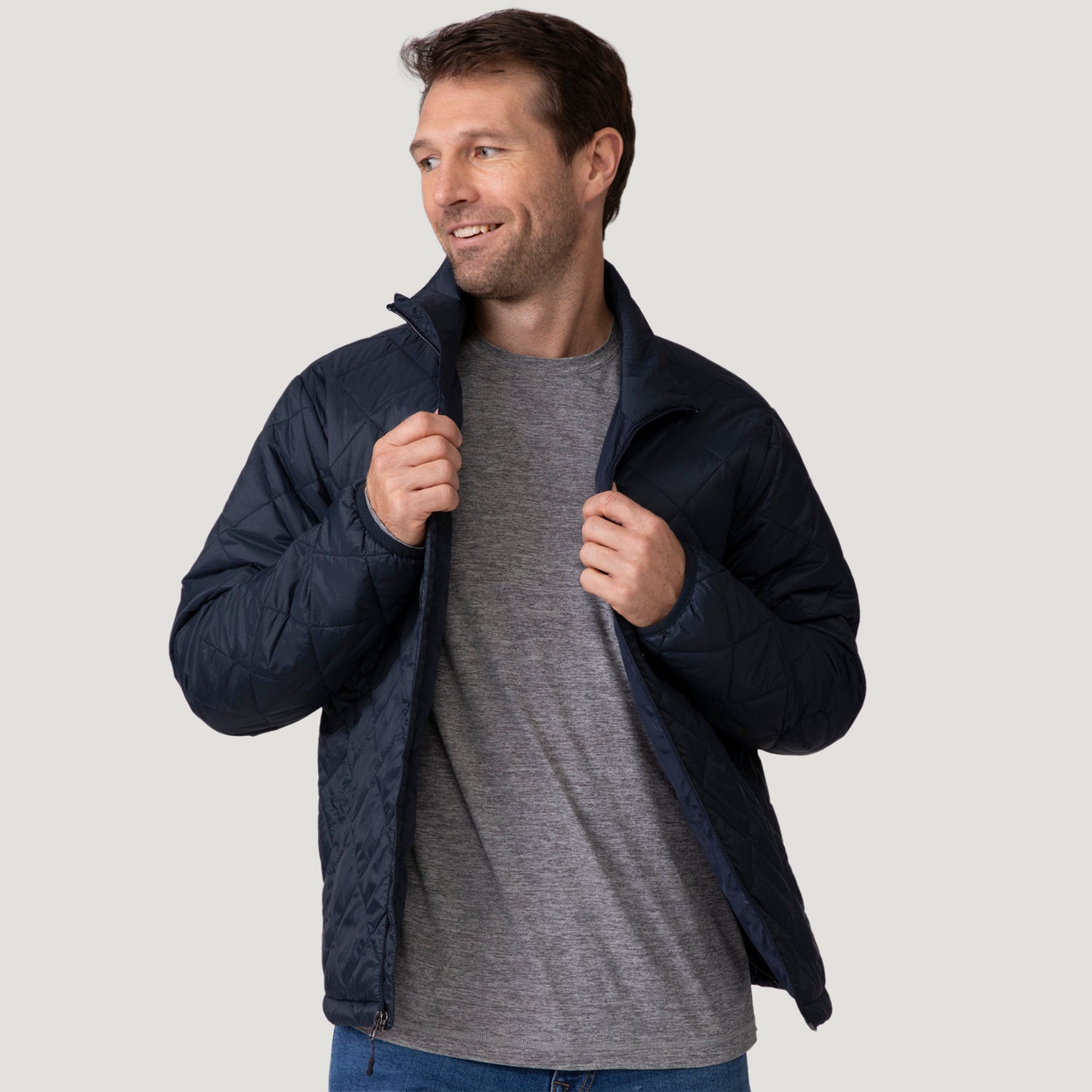 ![[Vince is 6'1" wearing a size Medium.] Man wearing the Free Country Men's Apex Quilted Puffer Jacket in navy, layered over a grey shirt and jeans, standing against a light background.](http://freecountry.com/cdn/shop/files/222-MOF4283NAVY_2406_FW24-036.jpg?v=1753370565&width=860)