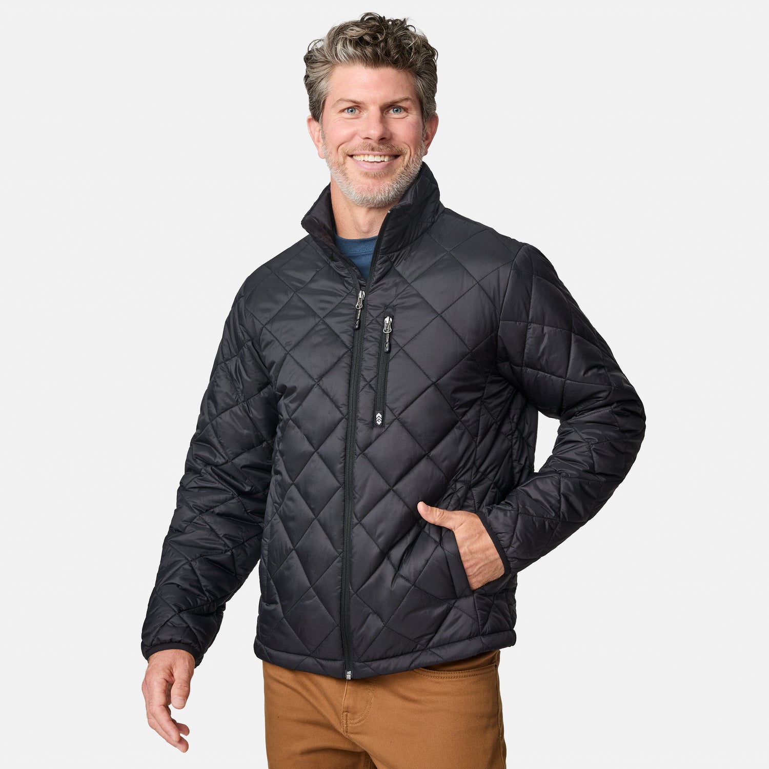 ![[Kolby is 6'2" wearing size M] Model wearing a black quilted Free Country jacket with diamond-pattern stitching, high stand collar, and zippered chest pocket; paired with brown pants and a blue crewneck tee for a warm, transitional-weather look.](http://freecountry.com/cdn/shop/files/222MOF5283_BLACK_167_FC.jpg?v=1753370565&width=860)