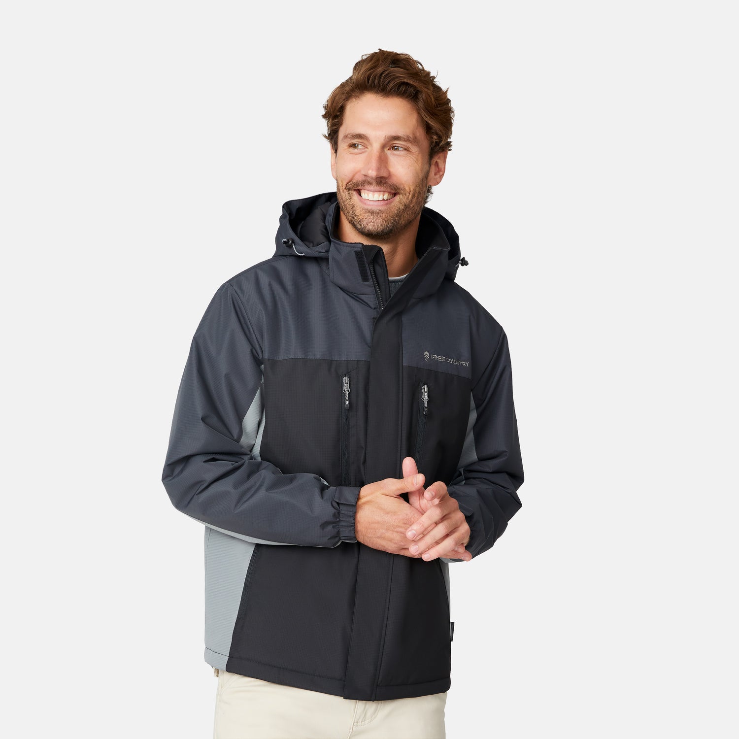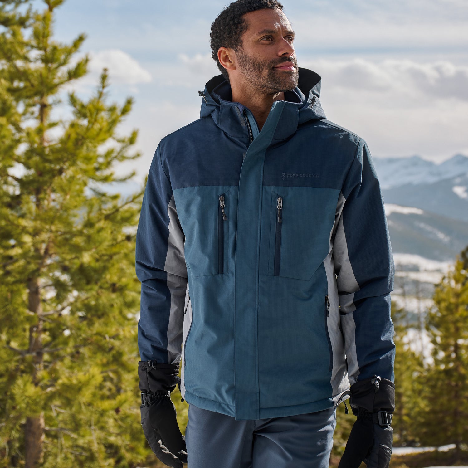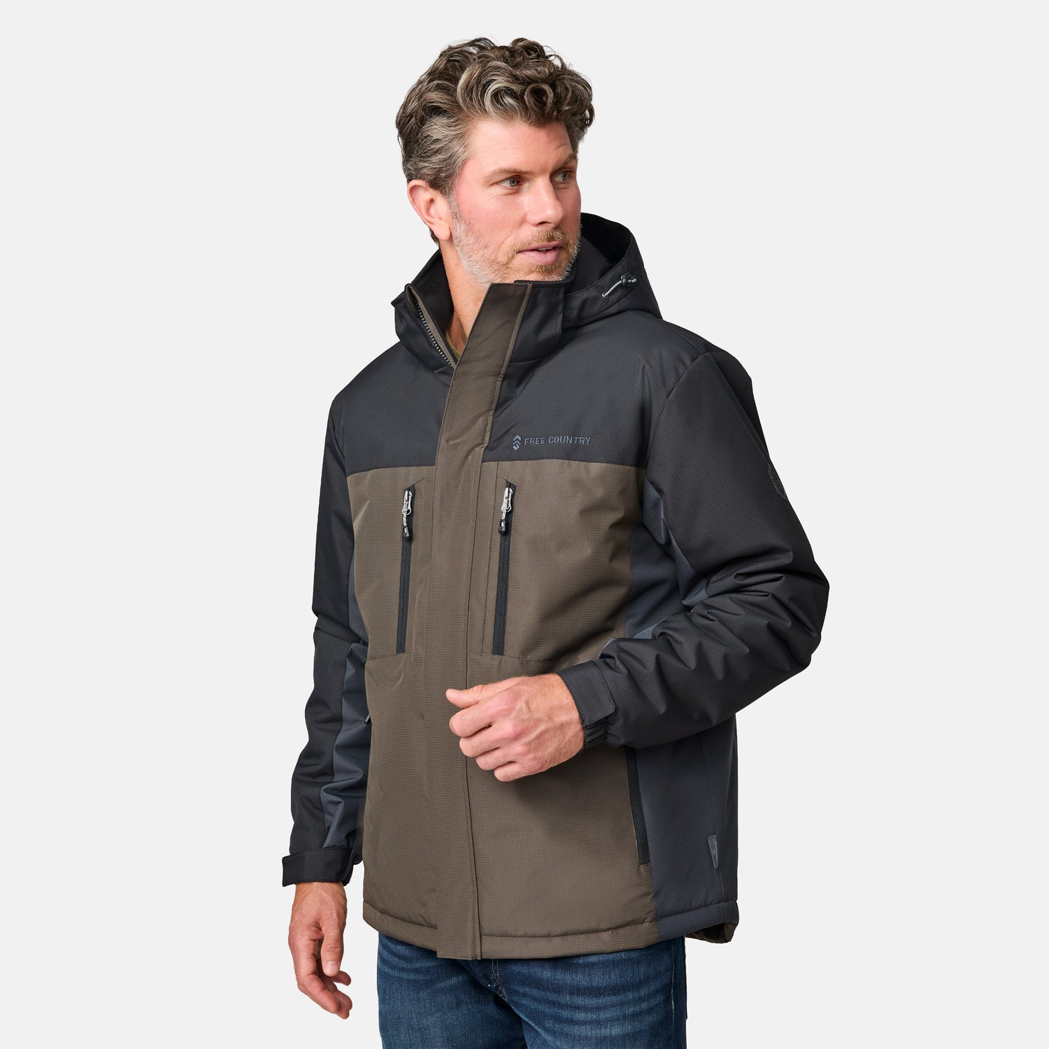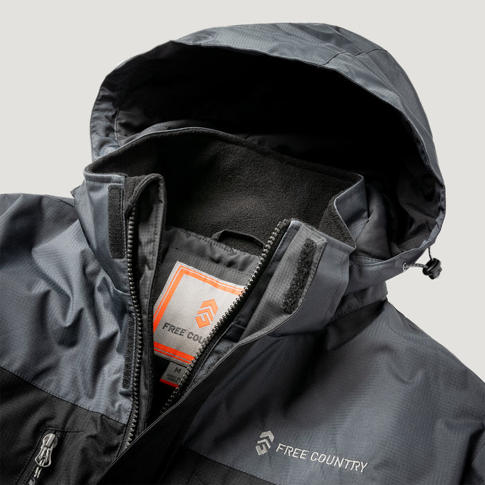 ![[Matt is 6'2" wearing size M.] Men’s Free Country black zip-front jacket with gray hood, sleeves, and side panels—features dual zippered chest pockets and side pockets for practical, cold-weather functionality. Paired with beige pants for a clean, transitional outdoor look.](http://freecountry.com/cdn/shop/files/90MOF5241_BLACK_COAL_2507_FW25-028_FC.jpg?v=1756829165&width=860)