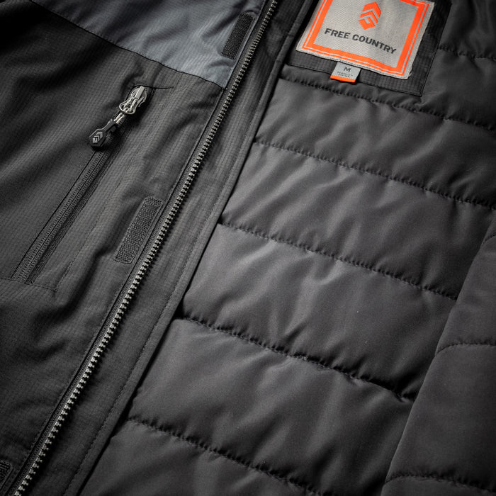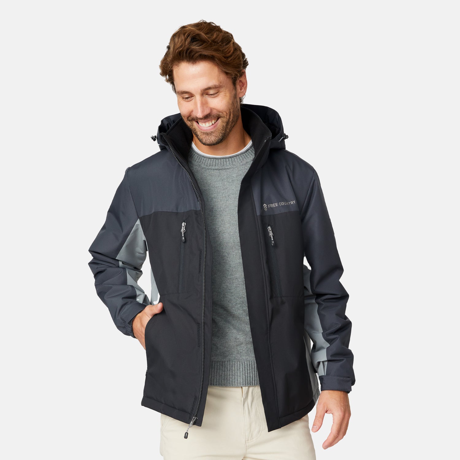 ![[Matt is 6'2" wearing size M.] Men’s Free Country black zip-front jacket with gray hood, sleeves, and side panels—features dual zippered chest pockets and side pockets for practical, cold-weather functionality. Paired with beige pants for a clean, transitional outdoor look.](http://freecountry.com/cdn/shop/files/90MOF5241_BLACK_COAL_2507_FW25-041_FC.jpg?v=1756829165&width=860)