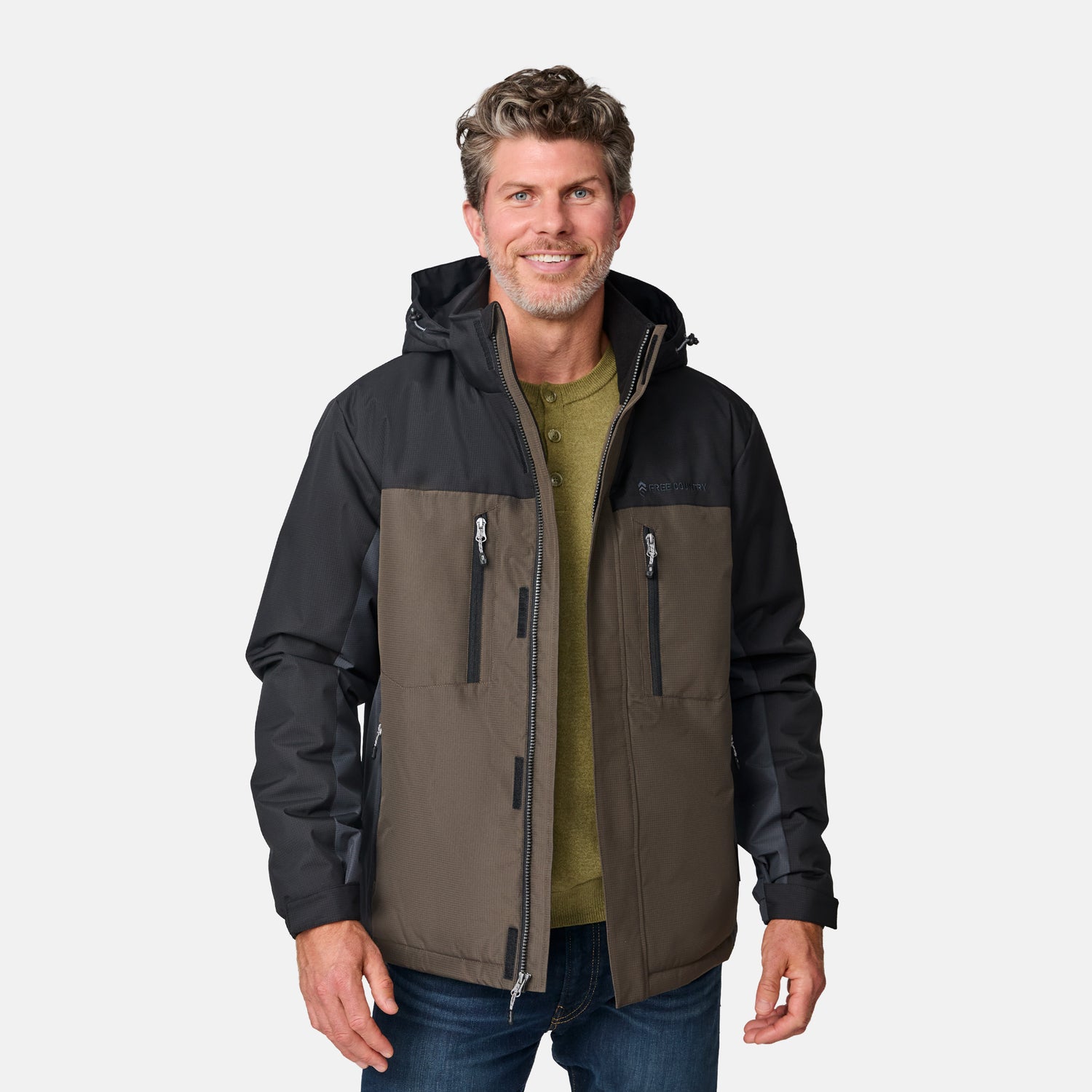 ![[Matt is 6'2" wearing size M.] Men’s Free Country black zip-front jacket with gray hood, sleeves, and side panels—features dual zippered chest pockets and side pockets for practical, cold-weather functionality. Paired with beige pants for a clean, transitional outdoor look.](http://freecountry.com/cdn/shop/files/90MOF5241_BLACK_COAL_2507_FW25-034_FC.jpg?v=1756829165&width=860)
