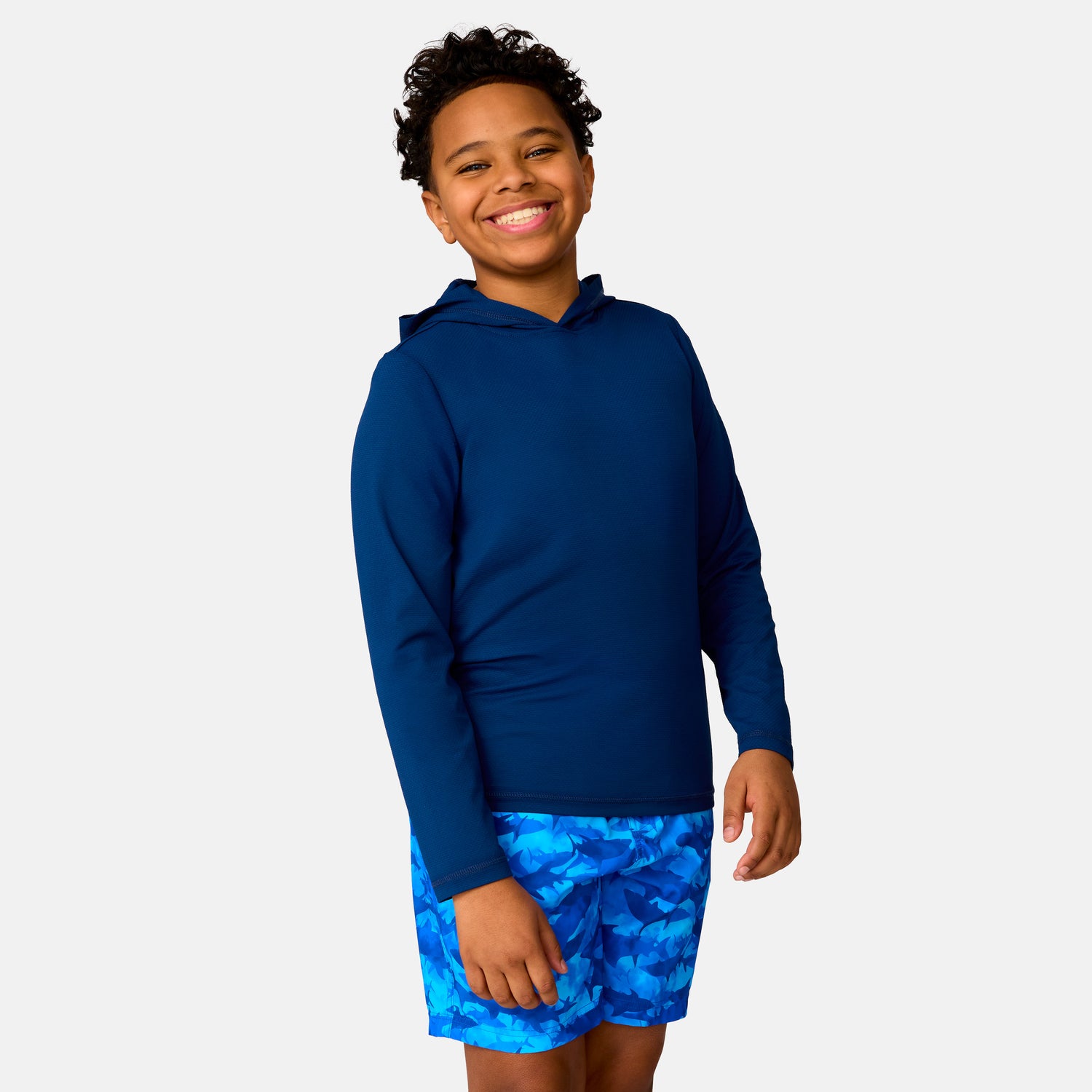 The secret? Zinc and jade woven right into the fabric—offering built-in UPF protection that won’t fade, and a cooling effect that helps beat the heat. An attached hood adds extra coverage, while thumbholes keep sleeves in place during every climb, sprint and cartwheel. Less sweat, no stink and 24/7 comfort—this hoodie plays as hard as they do.