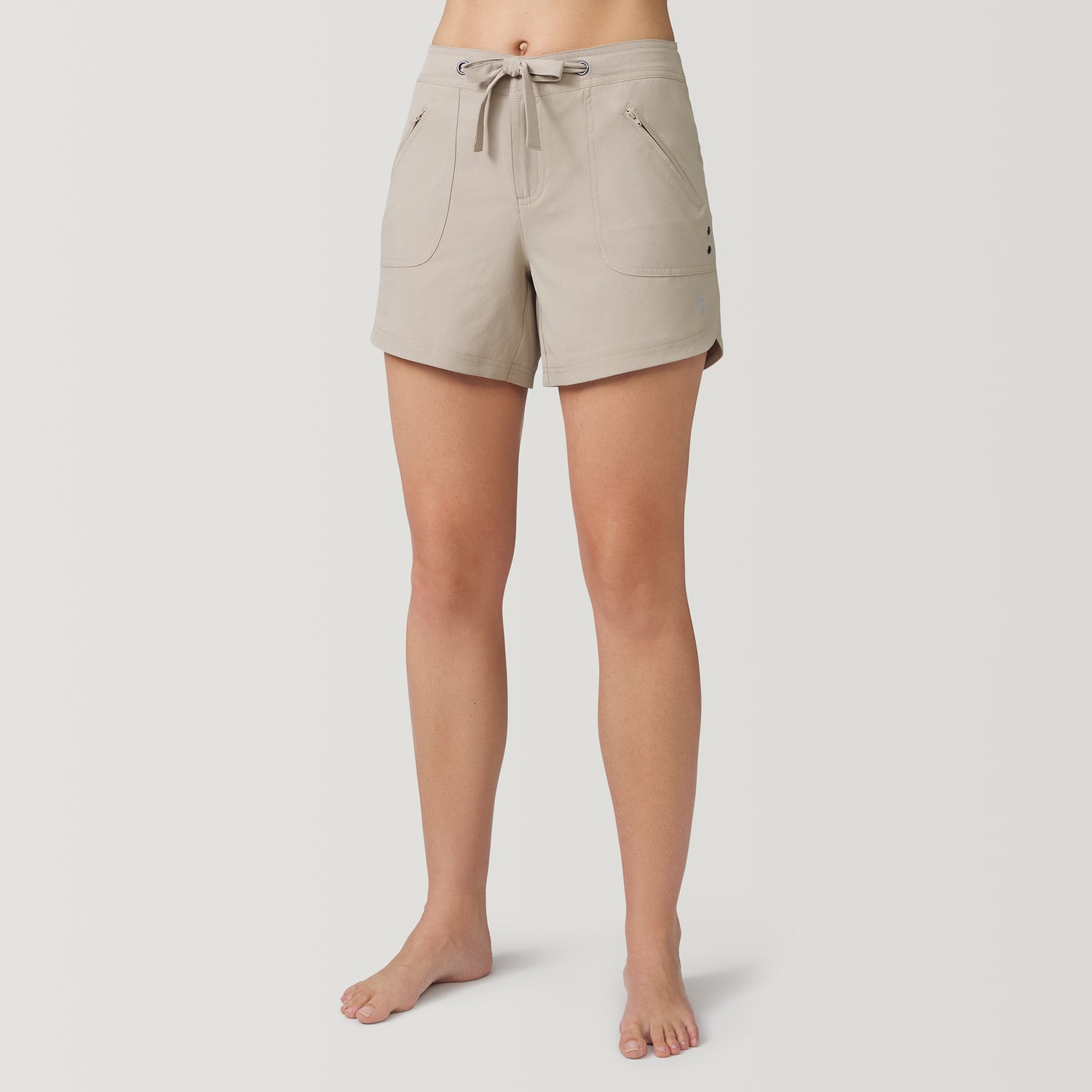 ![[Model is wearing a size Small.] Woman wearing Free Country Women's 5" Bermuda Board Short in Sand, size S, made from quick drying UPF stretch performance fabric featuring a fly front zipper closure with a drawcord and two front pockets](http://freecountry.com/cdn/shop/files/SWLSS4529SAND_2312_SS24-034.jpg?v=1746812813&width=860)