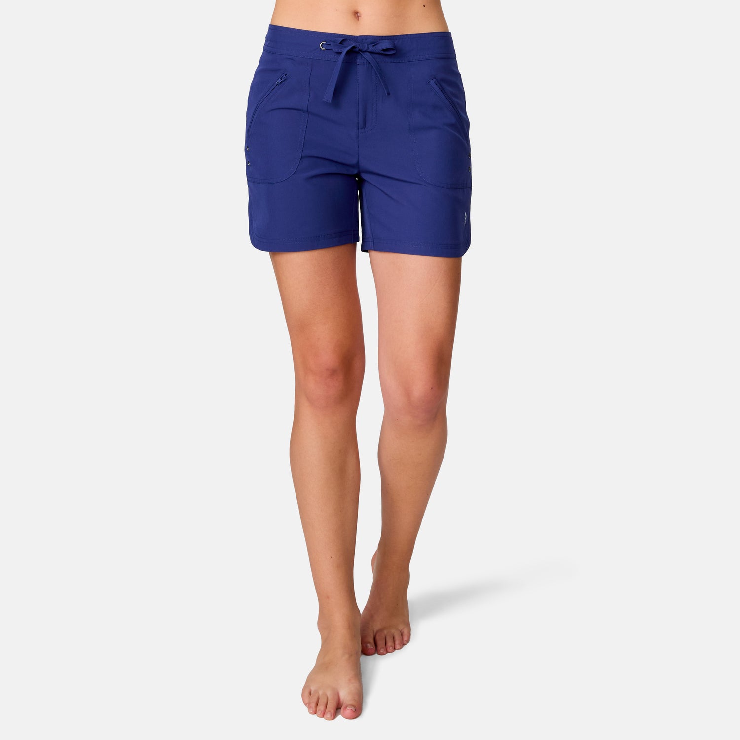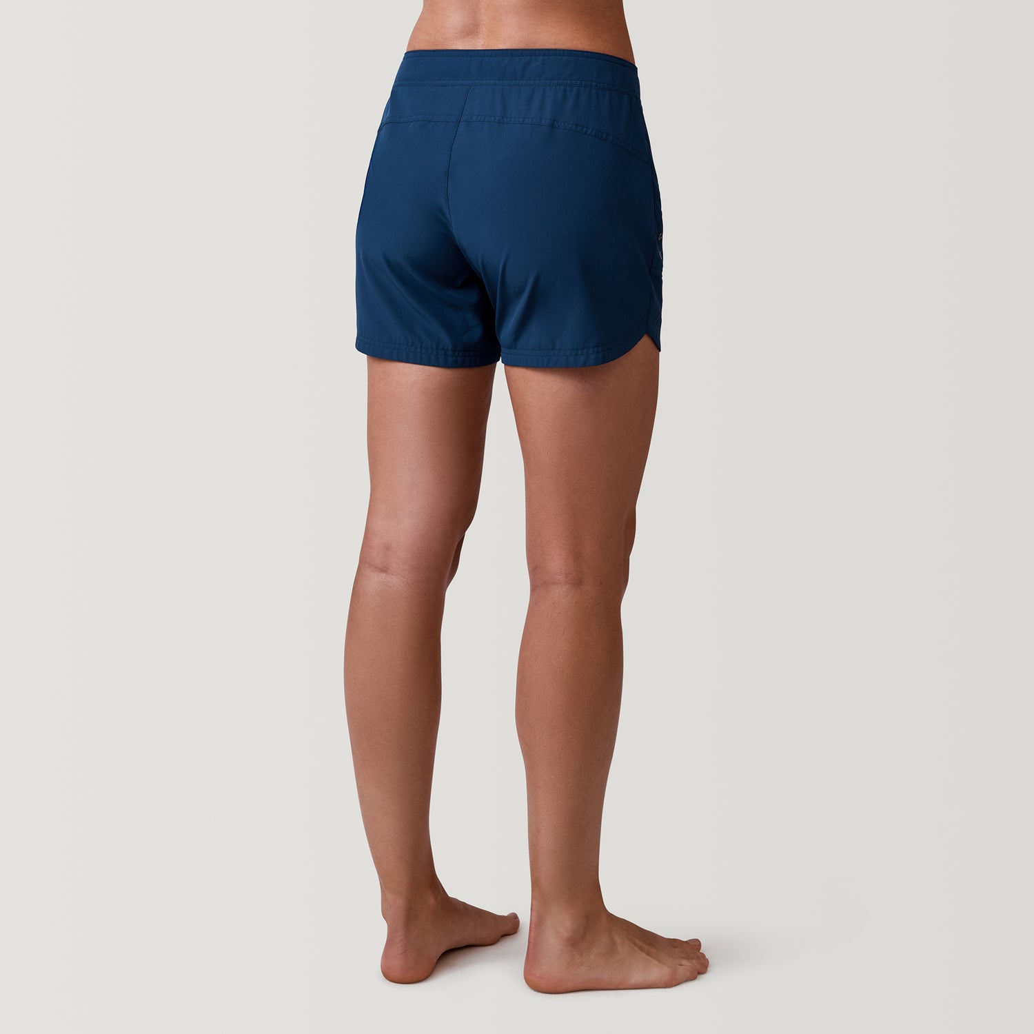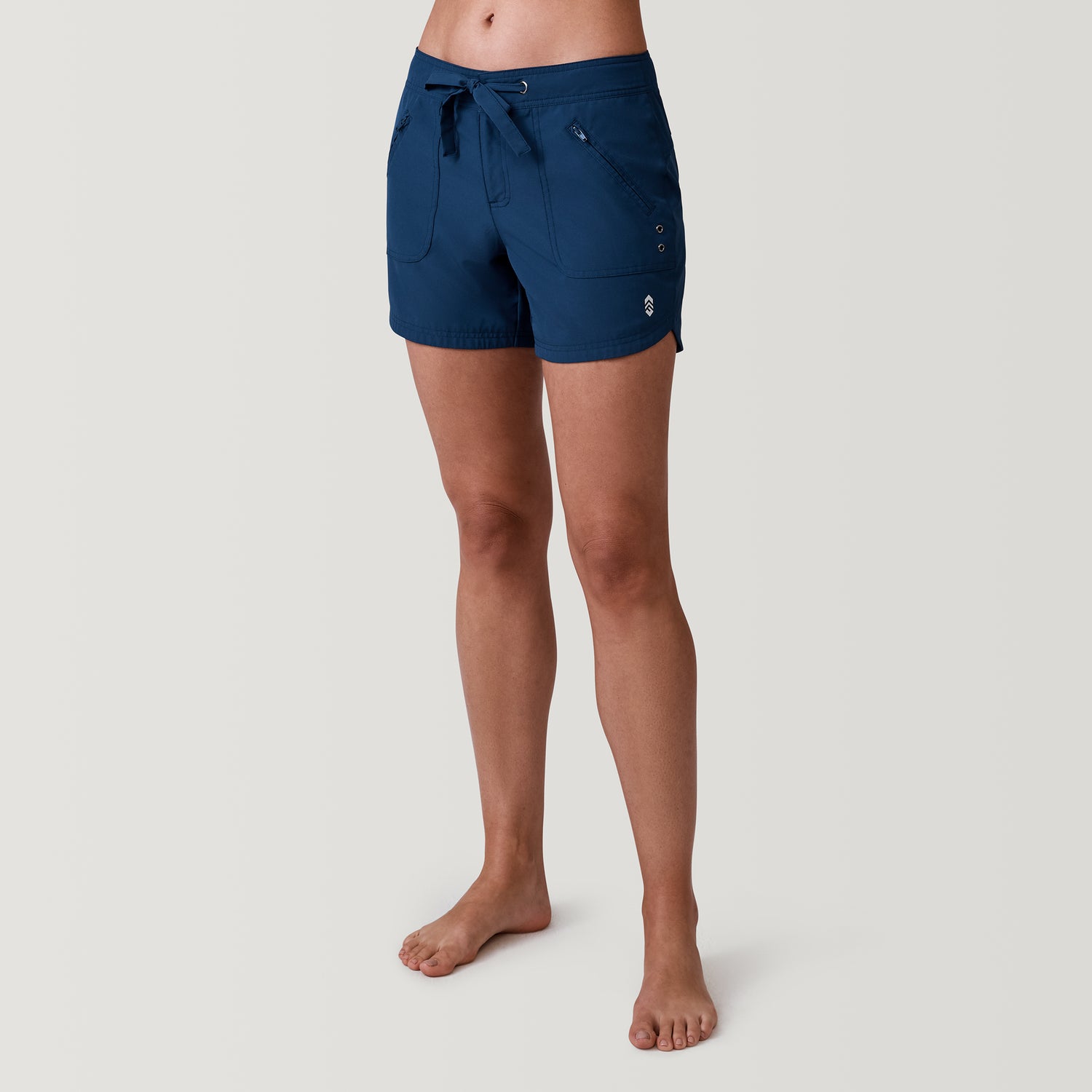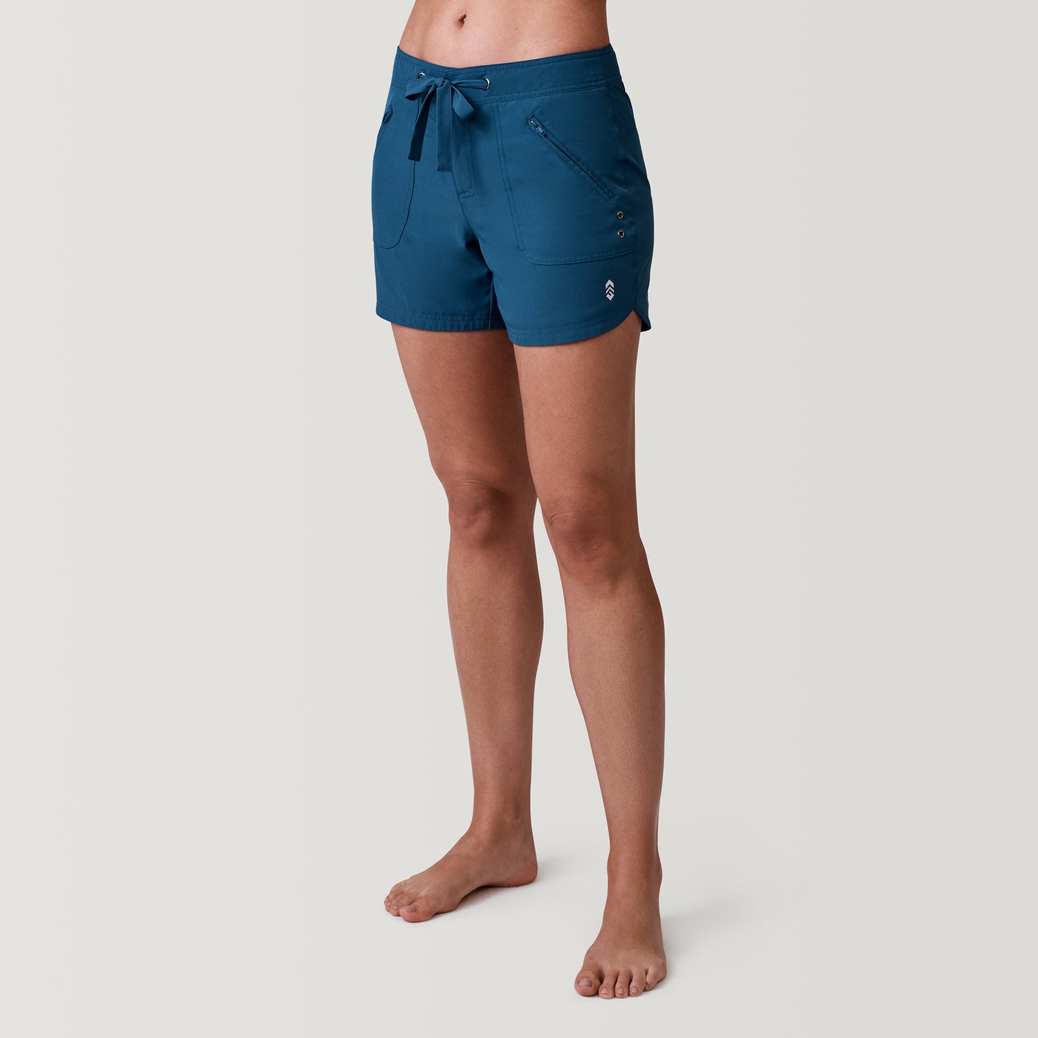 Our best-selling Bermuda board shorts now have a new silhouette with a shorter 5-inch inseam. This versatile Bermuda short is built to do it all, from paddle boarding to beach volleyball to boardwalk strolls. Revamped styling includes a scallop hem that keeps the fit flattering while still maintaining coverage, plus zipper-close pockets for safe storage. Super lightweight, quick-drying and with four-way stretch, our premium performance features will keep you dry and comfortable no matter where the day takes you.