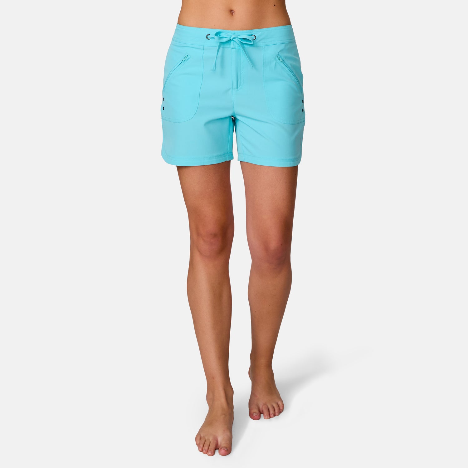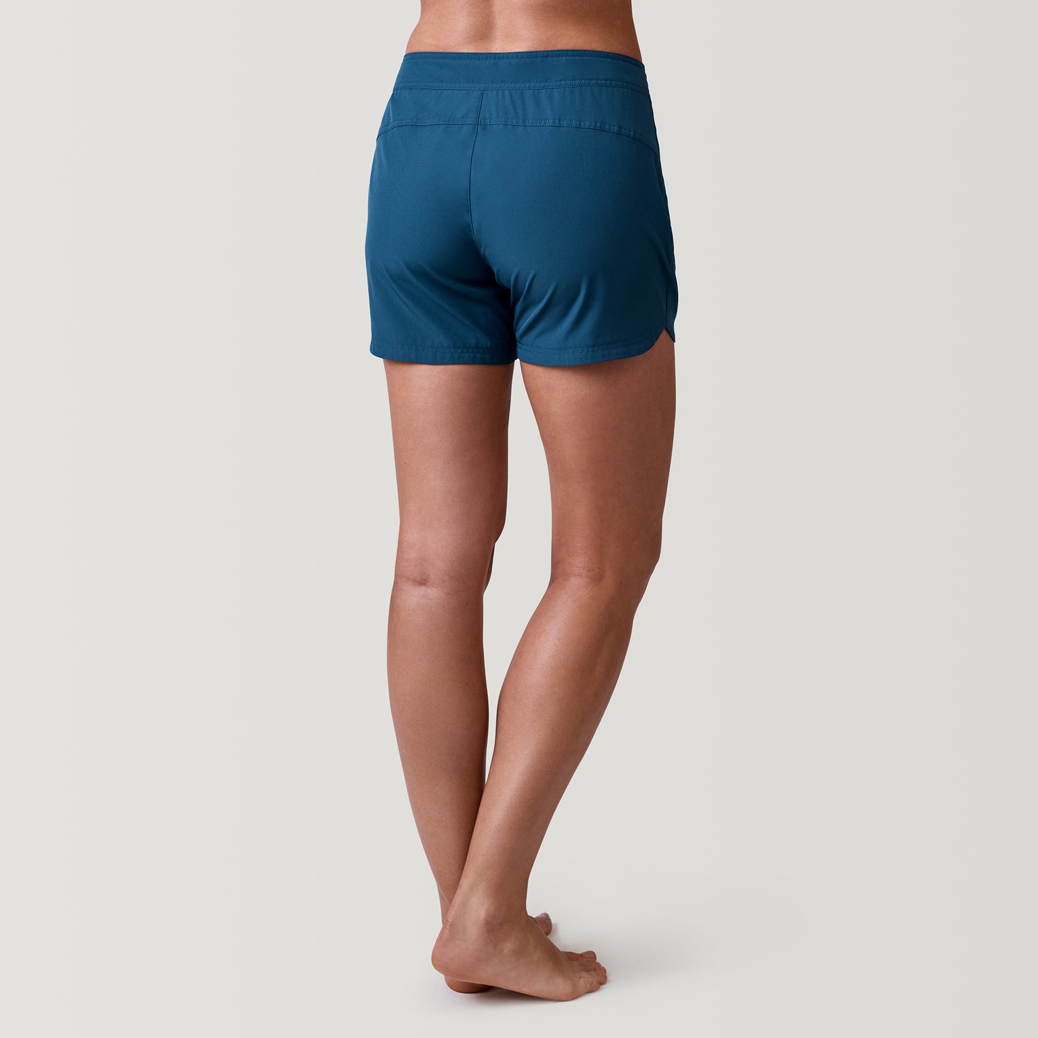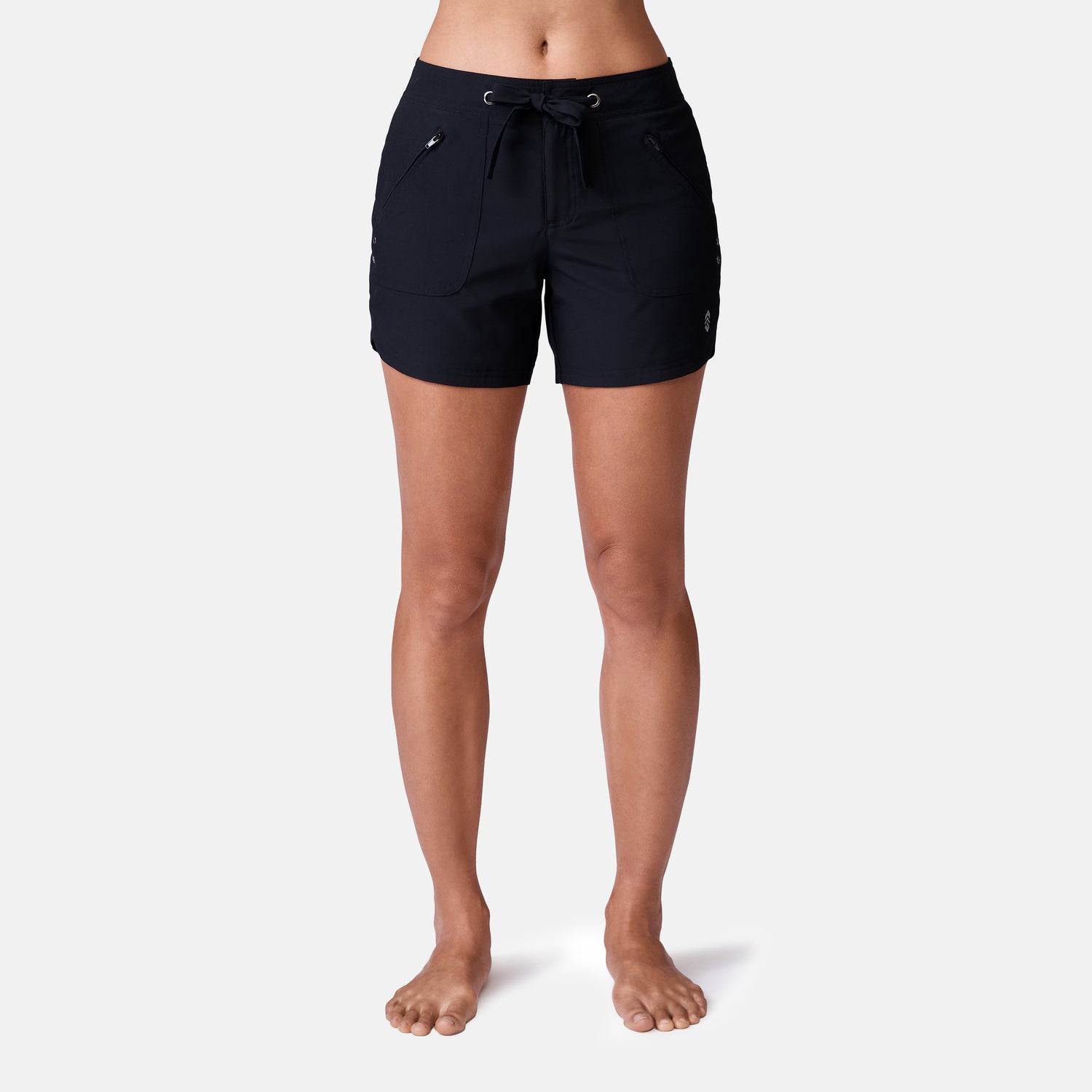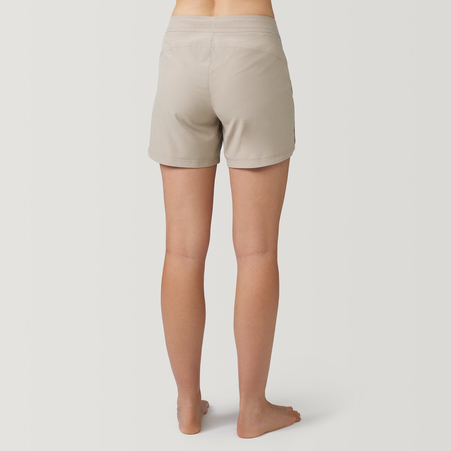 Our best-selling Bermuda board shorts now have a new silhouette with a shorter 5-inch inseam. This versatile Bermuda short is built to do it all, from paddle boarding to beach volleyball to boardwalk strolls. Revamped styling includes a scallop hem that keeps the fit flattering while still maintaining coverage, plus zipper-close pockets for safe storage. Super lightweight, quick-drying and with four-way stretch, our premium performance features will keep you dry and comfortable no matter where the day takes you.