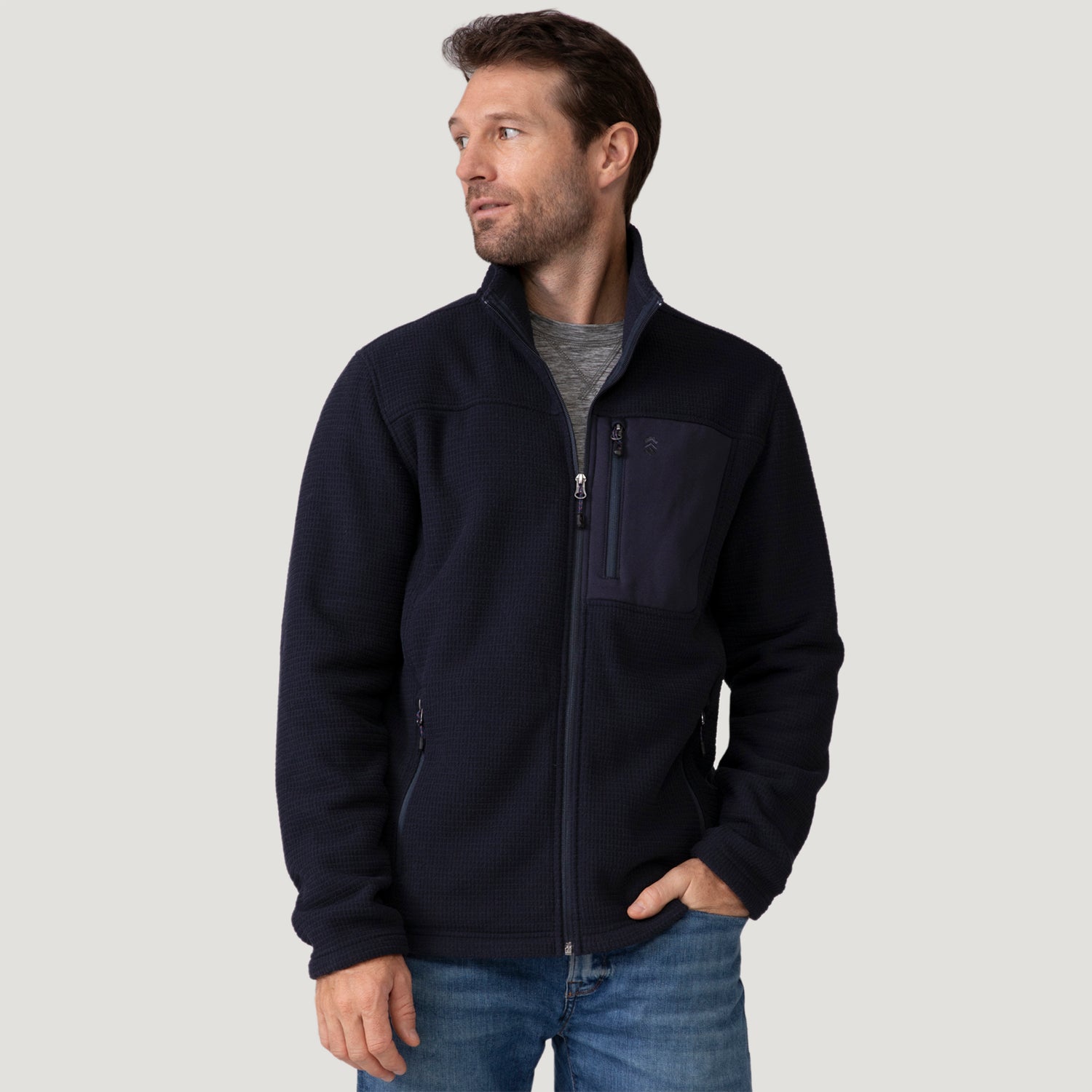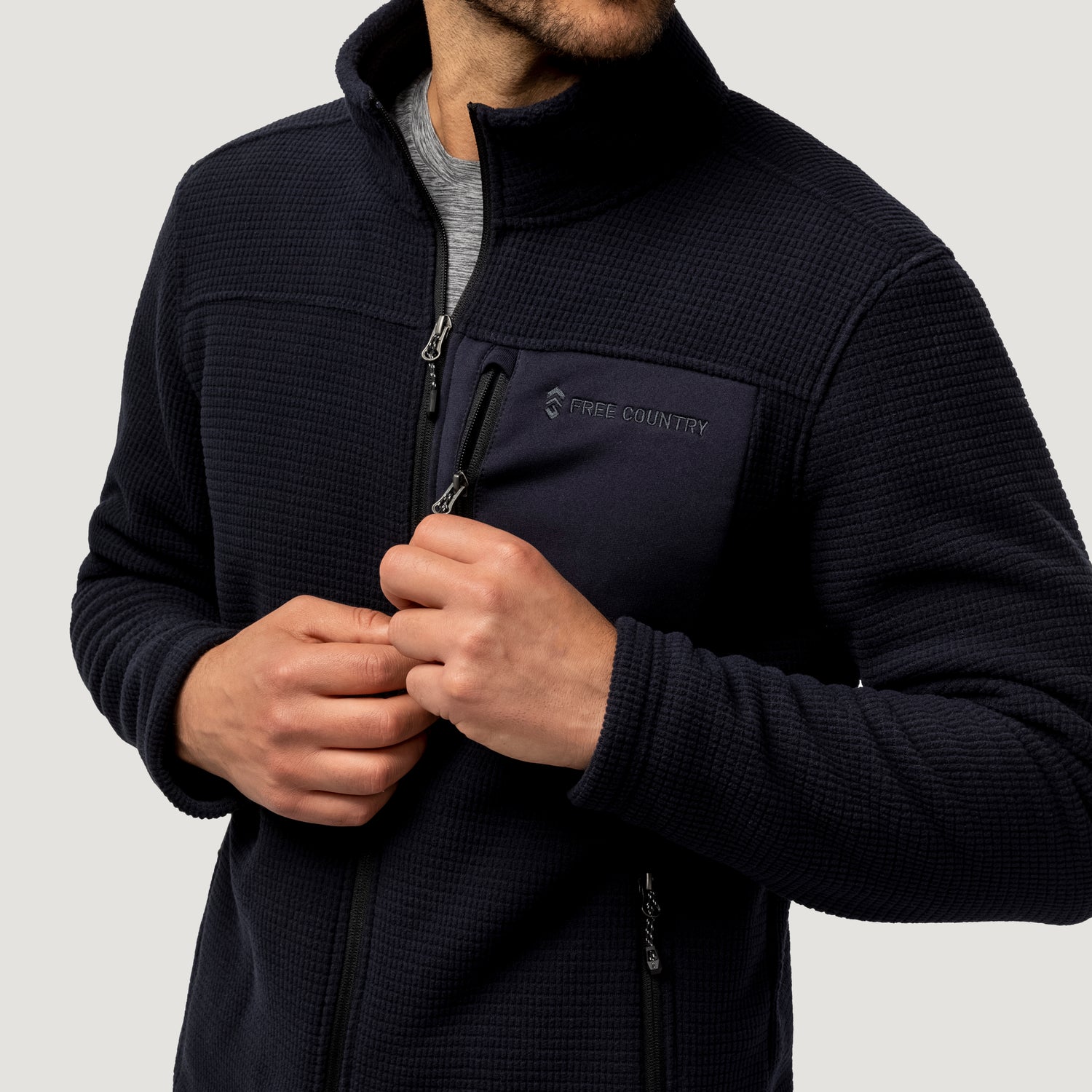 ![[Vince is 6'1" wearing a size Medium.] Man wearing Free Country Men's Dire Wolf II Grid Fleece Jacket in navy with a full zip front, zipper chest pocket, light grey background. Perfect men’s jacket for fall weather.](http://freecountry.com/cdn/shop/files/405-MOF4818DARKNAVY_2406_FW24-074.jpg?v=1745941625&width=860)