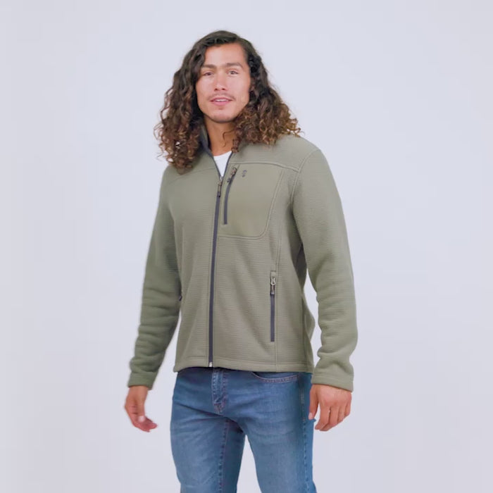 The Men's Dire Wolf II Grid Fleece Jacket is your ultimate companion for every adventure, from town trips to outdoor escapades. Crafted from power stretch knit fabric, it offers unbeatable durability and mobility to keep up with any activity. It features a plush double-faced grid fleece with a cozy Berber texture that provides warmth without the weight. Plus, a mixed fabric chest patch pocket adds a unique and practical touch.