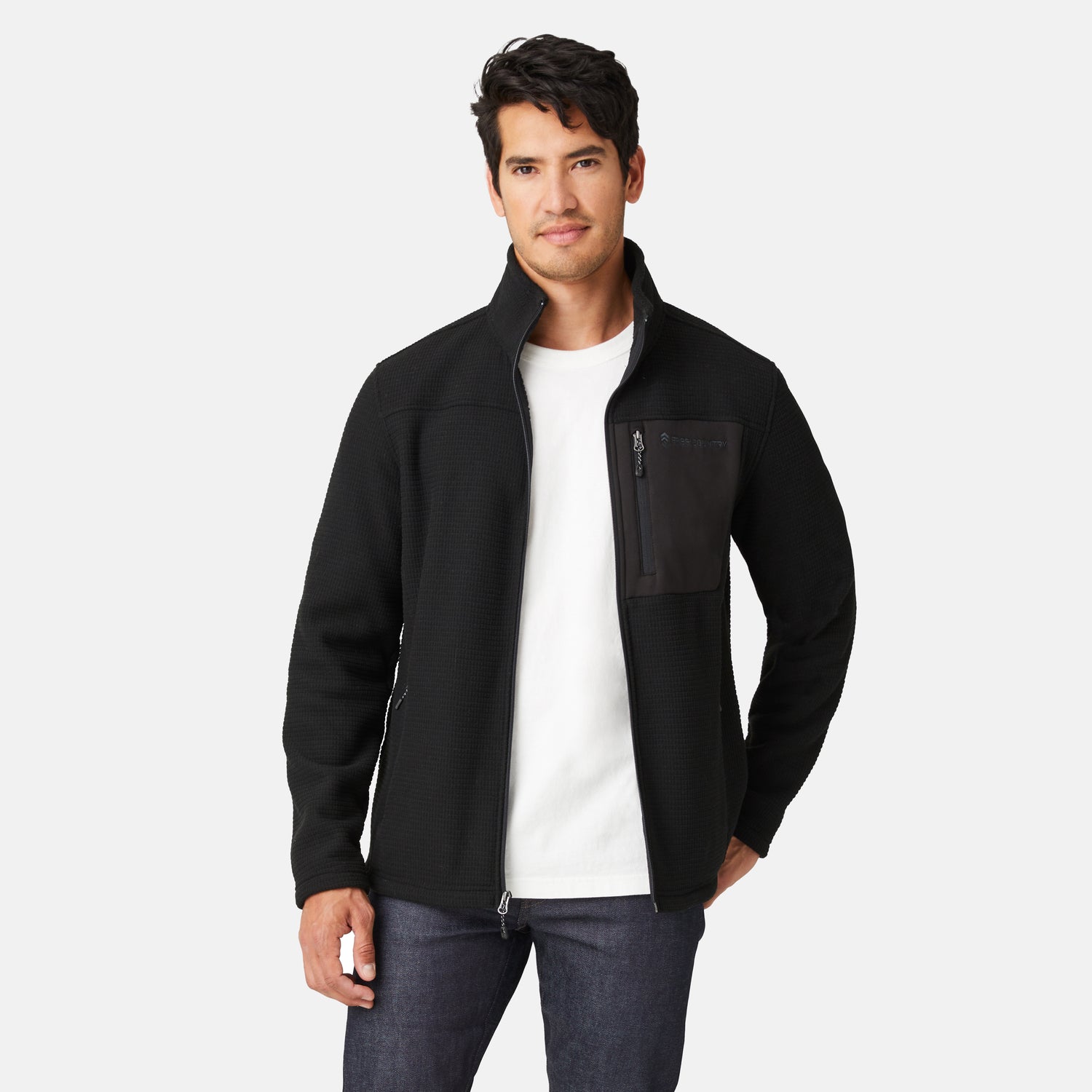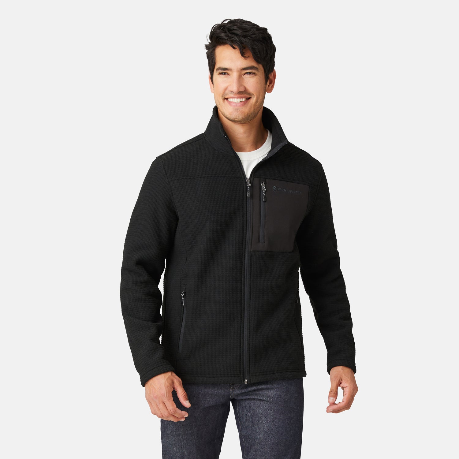 ![[Model is wearing a size Medium.] Man wearing Free Country Men's Dire Wolf II Grid Fleece Jacket in black with a full zip front, zipper chest pocket, light grey background. Perfect men’s jacket for fall weather.](http://freecountry.com/cdn/shop/products/405-MOF2818-JET-BLACK_1445.jpg?v=1752248380&width=860)