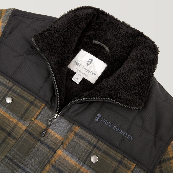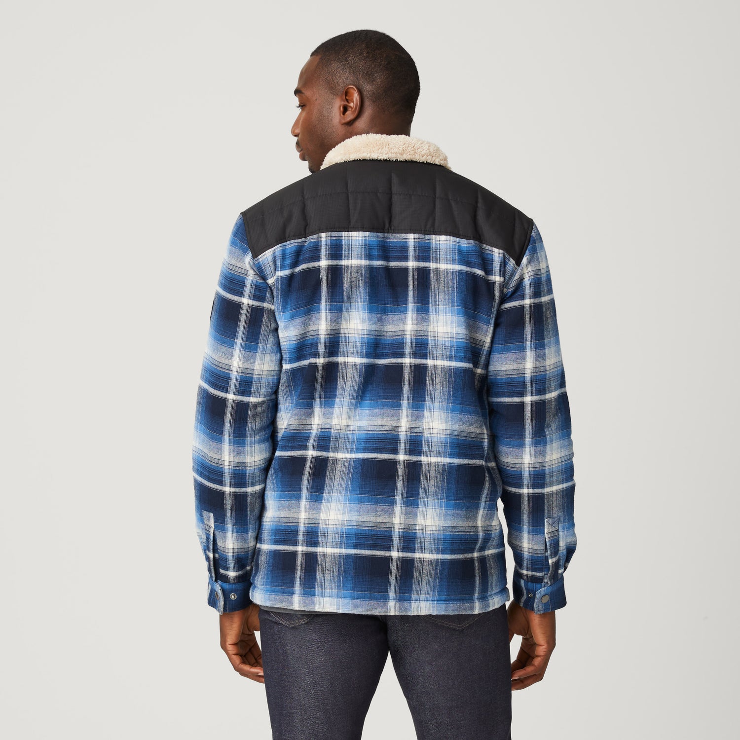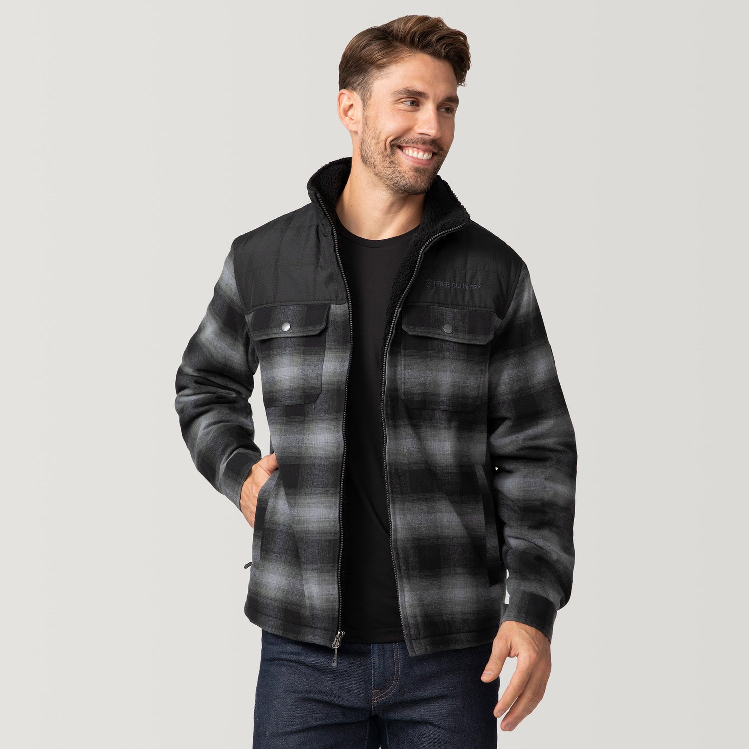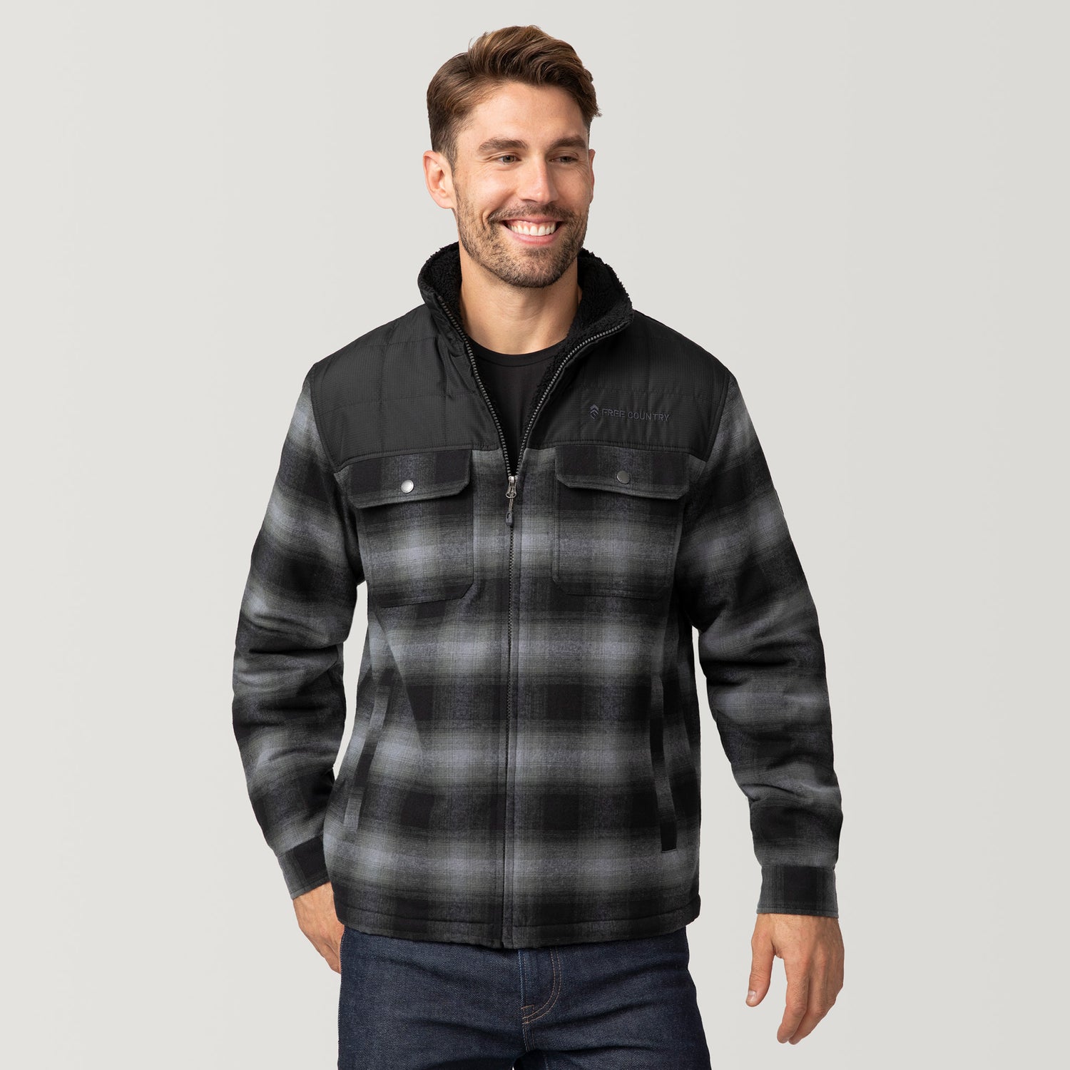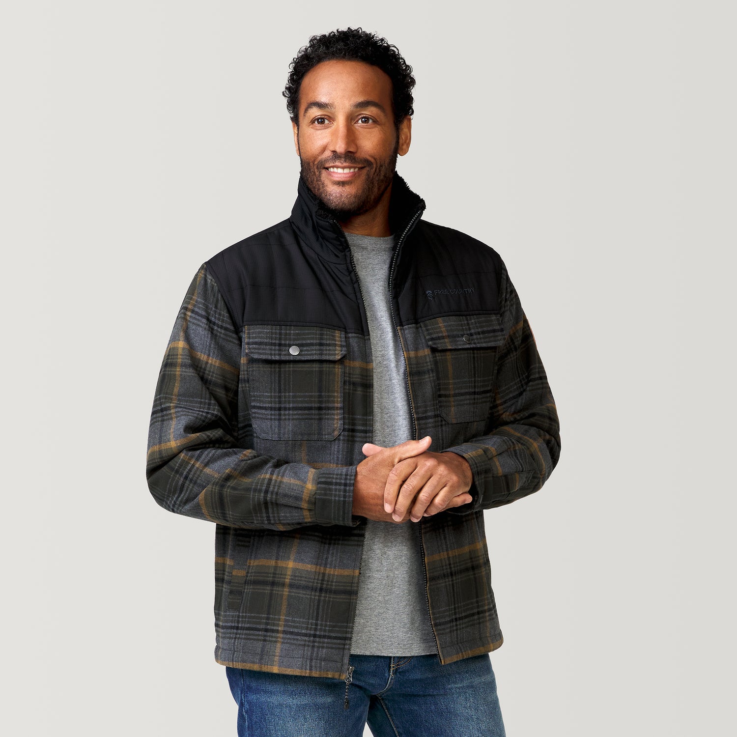 Stay stylish and comfortable with this high-performance plaid flannel shirt jacket, featuring soft Sherpa lining, recycled REPREVE® fill, and multiple pockets. Perfect for any task, it’s lightweight, durable, and machine-washable.