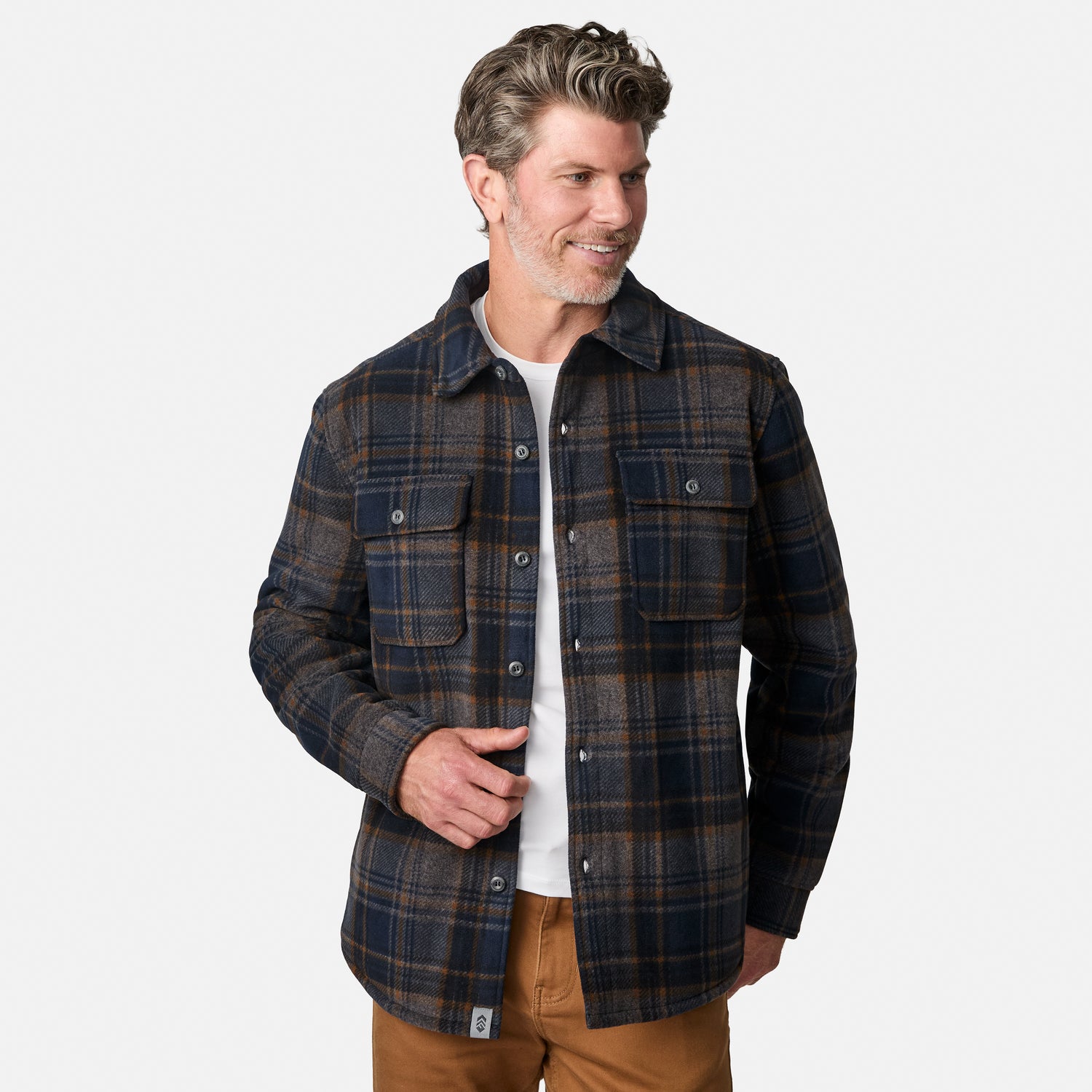 ![[Kolby is 6'2" wearing size M.] Men’s Free Country plaid button-down shirt in blue and brown checkered pattern, featuring dual chest pockets with button flaps and a relaxed fit. Paired with brown pants for a casual fall-ready look, ideal for outdoor layering.](http://freecountry.com/cdn/shop/files/419MOF3820_25201260_2520DARK_2520NAVY_2306_FW-016.jpg?v=1755867528&width=860)