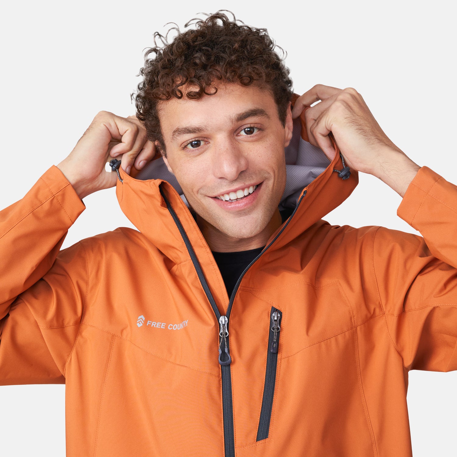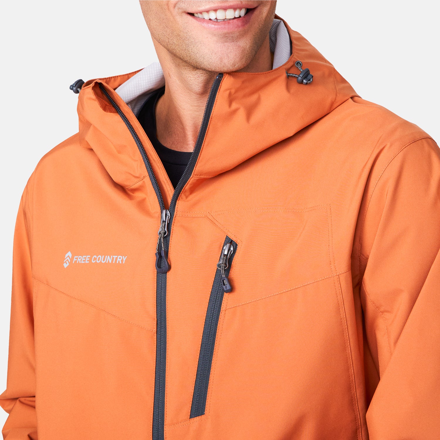 ![[Miguel is 6'2" wearing a size Medium.] Man wearing Free Country Men's Hydro Lite X2O Status Jacket in Autumn, size M, made from lightweight four way stretch water-resistant performance fabric featuring tab cuffs, an attached hood with a drawcord, and a chest and lower pockets, styled with black pants #color_autumn](http://freecountry.com/cdn/shop/files/212MOS503AUTUMN_2411_SS25-015-FC.jpg?v=1750960029&width=860)